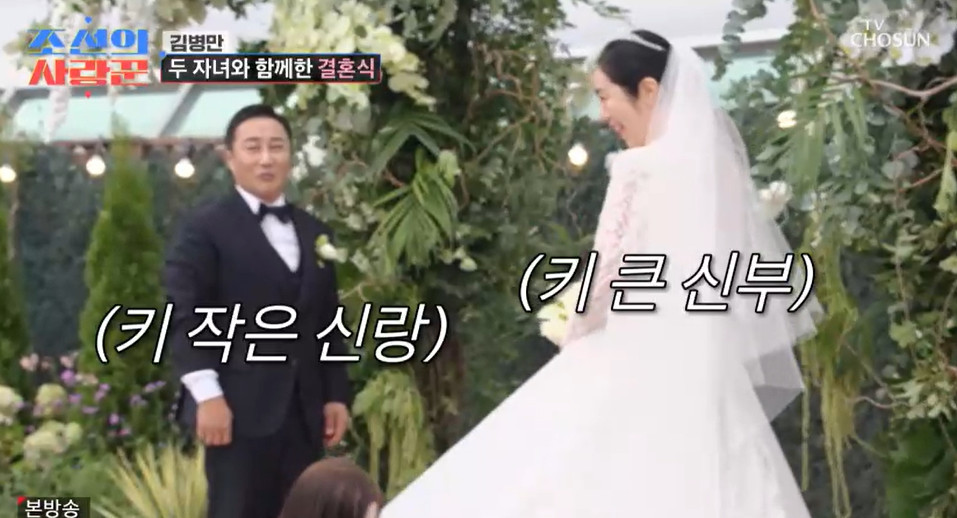 [스포츠조선김수현기자]김병만과아내가결혼식에서'설레는키차이'로화제가됐다.20일방송된TVCHOSUN'조선의사랑꾼'에서는김병만과아내가모두의축복속에서결혼식을올렸다.세상에하나뿐인축제같은결혼식바로일주일전김병만가족들은제작진을만났다.김병만은"오늘결혼식앞두고부모님한테인사드리러왔다.부모님은식장에못오시니우리가와야죠"라했다.현재돌아가신김병만의부모님은사찰에함께모시고있었다.김병만은"평소에아내가자주온다.제가자주못와서..."라며처음으로두아이들을데리고부모님께인사를하기로했다.김병만은"꿈에서어머니가제발을주물러주시더라.그래서더보고싶어지더라.결혼전에인사드려야겠다.'마음속에담았던것도이야기하고가야겠다'싶었다"라고백했다.김지민은"결혼전에돌아가신부모님뵈러가면진짜슬프다.눈물나는게결혼식을못보여줘서도있는데'진작에짝을찾아보여드릴걸'하면서만감이교차하고눈물이왈칵쏟아진다"라며공감했다.짱이는"왕할머니놀아가셨어.나도다알아"라며할머니를기억하고있었다.손주도못본채일찍돌아가셨던아버지.아내는"2006년당시남편과만나다보니까어머니랑가족들과친해져서김병만이없어도어머님하고잘지냈다.'오빠가좋으니까부모님께도잘해야지'하는생각이있었다.오빠가한창바빴을때아버님이병원에계셨다"라했다.당시대장암4기에치매까지있던김병만의아버지.수술을하면치매가더심해졌다는말을들었지만수술을감행,기억이거의없어지셨다고.아내는"어머님도힘드실테니그래서일끝나고가서어머님이랑같이밖에서밥먹고기분을풀어드렸다"라고회상했다.이어"쉬는날에어머님대신제가가있으면아버님이'병만이는왜안오냐'고하셨다.'나여기서언제나갈수있냐.집에가고싶다'하셨다.김병만이나오는'개콘'을틀어드렸는데오빠를보고도기억을못하셨다"라했다.아내는"아버님이갑자기사라지셔서어머님께전화해서'없어졌다'말씀드리고미친듯이뛰어다니며찾았다.전력질주로뛰어가보니역시아들에게가고있으신거다.눈물이났는데아버님을챙겨서돌아왔다"라고털어놓았다.김병만은"고맙고구세주이상표현이없다"라했지만아내는"내가하는게맞다고생각했다"라했다.10여년이지나며느리로인사드리게된지금의아내.김병만은"아버지엄마덕에은재다시만났어요.현준이현서,우리은재하고같이안싸우고평생제가잘책임지면서살게요"라며부모님께약속하며울컥했다.헤어메이크업에웨딩드레스까지입은김병만의아내는앤해서웨이를닮은비주얼로감탄을자아냈다.아내는"한강에서결혼을하다니"라며한껏설레어했다.김병만은"한강말고다음에는어디서하고싶은데?"라며너스레를떨었다.신부만을위한단하나뿐인예식장.아내는"화려한꽃들로꾸며지지않았으면좋겠다했는데너무예뻤다"라며만족스러워했다.170cm키에힐까지신은아내와158cm인김병만은한눈에봐도키차이가엄청나눈길을끌었다.아내는"마주보는게아니라내려다보는건데요"라며농담해막간웃음을자아내기도했다.가족이다함께아빠김병만에게로향하는길.아내는두아이들과함께버진로드앞에섰다.김병만은"복이넝쿨째굴러들어오는구나싶었다.저한테복을몰아준거같다"라했고아내는"이렇게짧은거리를너무돌아온거아닌가싶다"라며벅찬심경을밝혔다.김병만은"혼자서는빠져나올수없는깊은절망에서나를다시일으켜준당신"이라며"당신이엄마로서뿐만아니라한사람으로서도빛날수있도록언제나존중하겠습니다.이제는나의전부가된당신과짱이,똑이가나의구세주입니다.나를구원해준세사람.내행복의주인"이라며울컥했다.부모님을앞에둔아내는"제전택존중해주시고힘든시간기다리며같이아이들봐주셨던부모님.나도귀한딸인데너무감사하고고맙습니다"라며눈물을보였다[email protected]©스포츠조선.무단전재및재배포금지.
