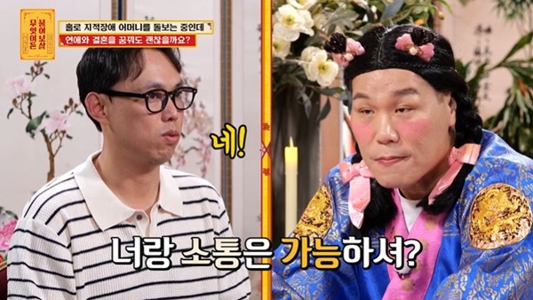 KBSJOY‘무엇이든물어보살’KBSJOY‘무엇이든물어보살’[뉴스엔유경상기자]지적장애모친과함께사는39세고민남에게서장훈이현실적인조언을했다.10월20일방송된KBSJOY‘무엇이든물어보살’에서39세회사원고민남은“제가지적장애를가진어머니가계시는데연애와결혼을생각하는게맞는지고민이돼서왔다”고말했다.고민남은모친에대해“할머니말씀으로는중학교때갑자기안좋아졌다고들었다.집에서안나가고말도없고그렇게됐다고하더라.병원도데려가고여러가지하셨는데그때는병명도잘몰랐다.장애판정도제가좀자라고난뒤받으셨다”고했다.고민남과동거중인모친은일상생활은가능하지만요리는아예안되고,목욕과손발톱깎는것등을도와드려야하는상태.고민남은모친에대해“조용할때는말을안한다.대상포진이와도말을안했다.반대로말을많이하는시기에는외출을자주하고모르는사람에게도왜쳐다보냐고,공격적인성향이있다”고털어놓았다.15살때부친이돌아가시고형제도없어서실질적으로모친에게는자신이전부라고.마지막연애는10년이넘었다고도고백했다.서장훈은“어려운일이고답답하고고민되는일이긴한데.어머니때문에누구를못만나고아예시도도하지않고.연애생각자체를안하는건잘못됐다고본다.세상에다양한사람이많다.한탄만하고있을때가아니라좋아할만한사람을찾아서,너때문에라도어머니를함께케어할수있는마음을갖고계신분을만나야한다”고조언했다.서장훈은“당연히어렵다.그래도누구를만나서시도하고사랑해서그사람이정말너를좋아하게한다면해결가능하다고본다”며“나중에집에서혼자케어하기어려울수도있다.요양원으로가셔야한다.좋은데모시려면네가돈을더벌어야한다.할일이많다.신세한탄만할시간이없다.네가결혼해서잘살여건을만들어라”고당부했다.(사진=KBSJOY‘무엇이든물어보살’캡처)뉴스엔유경상yooks@기사제보및보도자료[email protected]ⓒ뉴스엔.무단전재&재배포금지Copyright©뉴스엔.무단전재및재배포금지.