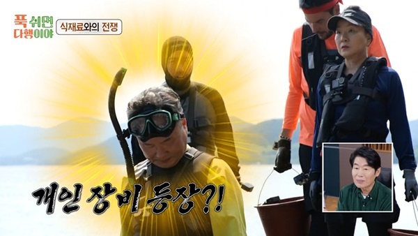 MBC‘푹쉬면다행이야’MBC‘푹쉬면다행이야’[뉴스엔유경상기자]안유성셰프가한국바다셰프협회회장이라며남다른장비를자랑했다.10월20일방송된MBC‘푹쉬면다행이야’(이하‘푹다행’)에서는NEW셰프군단안유성,이모카세,파브리셰프와미미,강재준,유희관이무인도레스토랑직원이됐다.직접물에들어가식재료를공수하는시간에유희관이안유성을보고“명장님뭐하시는거냐”며놀랐다.미미도“명장님장비가?”라며개인장비당장에당황했다.안유성은“제가누구냐.한국바다셰프협회회장”이라고말했고,실제로그런협회가존재한다는데안정환이“농담인줄알았다”며웃었다.안유성은“제가바다를너무좋아해서도수물안경까지맞췄다”며“25만원주고안경에도수맞춰서직접구매했다”고도수물안경도자랑했다.안유성은“전문스킨스쿠버에게물어봐서준비를단단히하고왔다”며탁월한준비성과자신감을드러냈지만정작물에들어가서는크게성과를보이지못하는모습으로웃음을줬다.안유성이소라하나를잡고“저는시야가너무좋으면잘안보이더라.더듬더듬하는편인데.제가활동하던바다가아니라서그런지”라며변명을늘어놓자붐이“무슨소리를하는거냐”고반응해웃음을더했다.(사진=MBC‘푹쉬면다행이야’캡처)뉴스엔유경상yooks@기사제보및보도자료[email protected]ⓒ뉴스엔.무단전재&재배포금지Copyright©뉴스엔.무단전재및재배포금지.