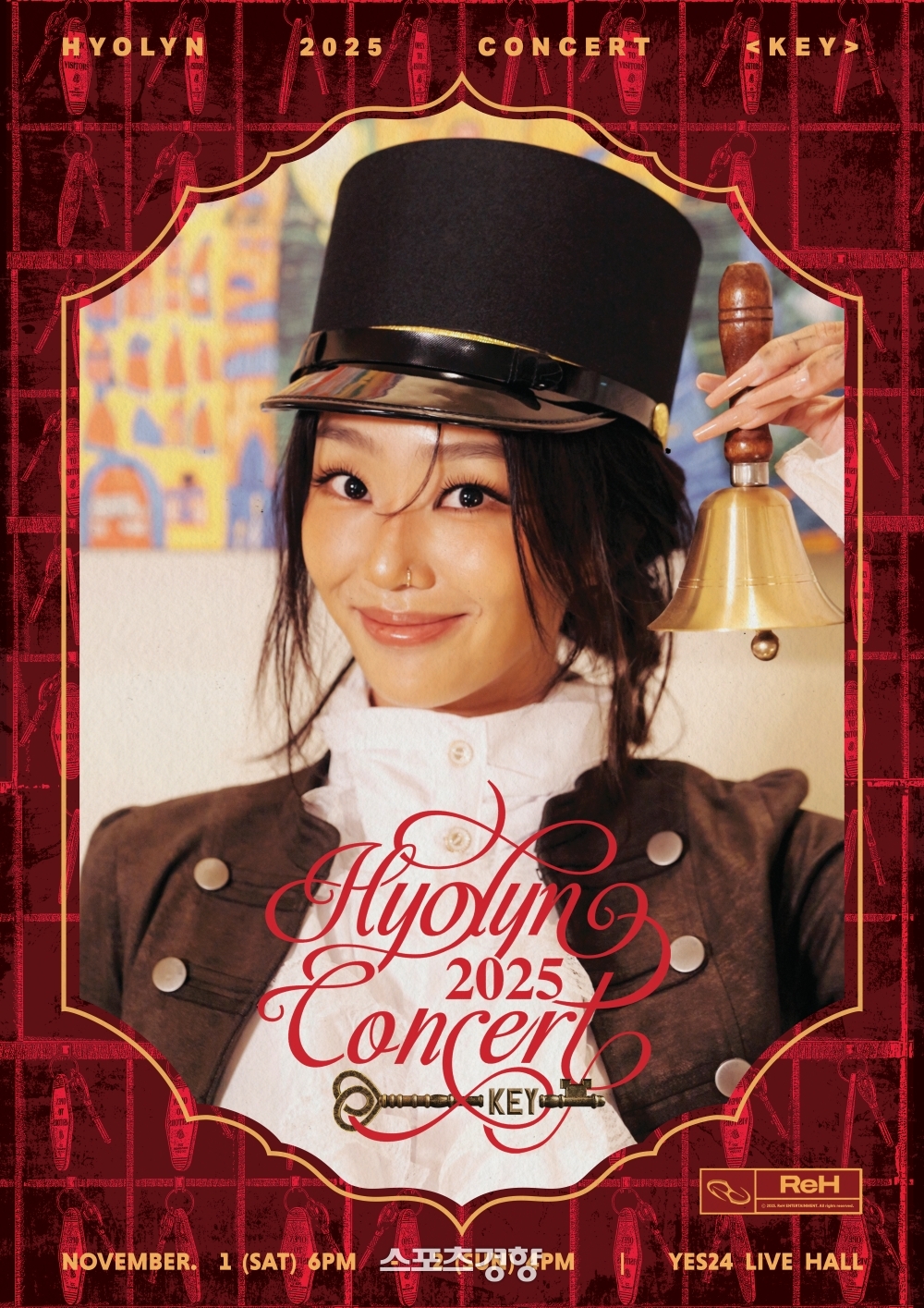 2년만에열리는국내단독공연호텔리어변신,팬들과소통예고아이유커버곡등세트리스트스포효린콘서트포스터.ReH엔터테인먼트제공가수효린이11월단독콘서트로팬들을만난다.소속사ReH엔터테인먼트는효린이오는11월1일과2일양일간예스24라이브홀에서‘2025효린콘서트<키>(2025HYOLYNCONCERT<KEY>)’를개최한다고21일밝혔다.이와함께최근공개된2차포스터에서효린은호텔리어로변신해이번공연의콘셉트를알렸다.효린은앞서이번콘서트의세트리스트를일부공개했다.‘론리(Lonely)’,‘바디토크(BODYTALK)’,‘복면가왕’에서선보인아이유의‘러브윈즈올(Lovewinsall)’,‘샤티(SHOTTY)’는물론미공개신곡‘스탠딩온디에지(Standingontheedge)’까지다채로운무대를예고했다.이번공연은2023년12월열린효린쇼‘원나잇온리’이후약2년만에개최되는국내단독콘서트다.콘서트속호텔은효린의기억,감정,스토리가담긴공간을의미한다.관객은효린이건네는열쇠(KEY)를통해각방의이야기를경험하는‘손님’이자‘탐험자’로서공연을즐기게된다.이선명기자[email protected]©스포츠경향.무단전재및재배포금지.