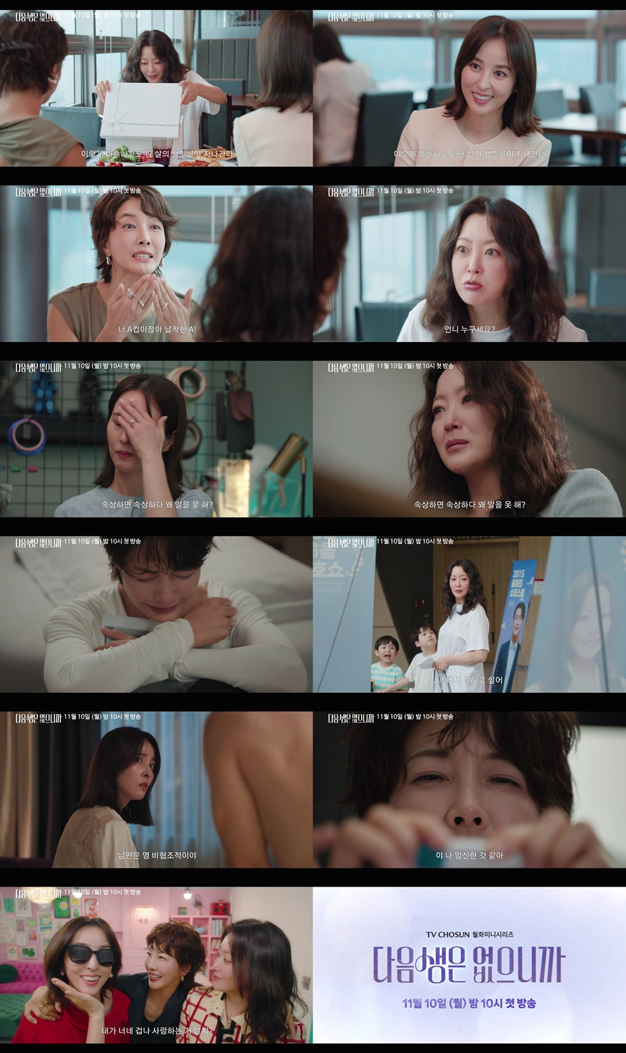 [스타뉴스|김수진기자]김희선·한혜진·진서연,'다음생은없으니까'인생성장기TVCHOSUN새월화미니시리즈'다음생은없으니까'김희선-한혜진-진서연이20년지기절친3인방의인생성장기로폭풍공감을선사하는'2차티저'를공개했다.오는11월10일(월)밤10시첫방송예정인TVCHOSUN새월화미니시리즈'다음생은없으니까'(연출김정민/극본신이원/제작티엠이그룹,퍼스트맨스튜디오,메가폰)는매일같은하루,육아전쟁과쳇바퀴같은직장생활에지쳐가는,마흔하나세친구의더나은'완생'을위한좌충우돌코믹성장기다.인생에서가장불안하고혼란한시기로꼽는제2의사춘기불혹에직면한세친구가다시한번인생을잘살아보고자노력하는'성장통'을그려낸다.'다음생은없으니까'는'꽃선비열애사','암행어사:조선비밀수사단''대군-사랑을그리다','간택-여인들의전쟁','공주의남자'등에서감성적인연출로독창적인미장센을선보인김정민감독과'그린마더스클럽'으로입체적인캐릭터와섬세한심리묘사로각광받은신이원작가가의기투합했다.여기에김희선-한혜진-진서연-윤박-허준석-장인섭등믿고보는배우들이총출동해색다른공감시너지를이뤄낸다.이런가운데20일(월)김희선-한혜진-진서연이인생2막을꿈꾸는마흔하나절친3인방의인생리셋스토리에대한서막을알리는'2차티저영상이공개돼시선을사로잡는다.'2차티저영상'은한번뿐인인생을다시제대로살고싶은조나정(김희선분),구주영(한혜진분),이일리(진서연분)의다양한희로애락이파노라마처럼펼쳐져기대심리를자극한다.먼저조나정이아들둘을이끌고야단법석하며친구들과의생일파티현장에나타나자,구주영과이일리가모른척고개를돌려버려웃음을자아낸다.특히속옷선물을받은조나정과이일리가투덕거리며한바탕웃음꽃을피우는모습위로"어릴땐이쯤되면꽤나멋지게살고있을줄알았는데.이렇게마흔하고도한살의생일날이지나간다"라는조나정의자조적인멘트가울려퍼져심장을일렁인다.이후20년전화끈하게맥주캔을맞부딪치는조나정,구주영,이일리의풋풋했던대학시절과함께손으로얼굴을가린채난감해하는구주영,눈물을뚝뚝흘리는조나정,소주를병째로들이켠뒤오열을쏟아내는이일리가연달아모습을드러내고"우리20년지기다.힘들면힘들다속상하면속상하다왜말을못해?"라는이일리의강렬한일침이흘러나와끈끈한우정을증명한다.이어조나정은'2018올해의쇼호스트'에선정됐던자신의기념비를보며"나다시일하고싶어"라고재기에대한소망을내비치고,구주영은이일리에게"시댁은은근나나이많은탓을하는데남편은영비협조적이야"라며임신에적극적이지않은남편오상민(장인섭분)에대한고민을털어놓는다.특히"내나이가어때서"라며어딘가로달려가는조나정뒤로"야나임신한것같아"라고절규하는이일리의모습이'마흔세친구의좌충우돌성장기'라는문구와절묘하게어우러진다.마지막으로화려하게꾸민조나정,구주영,이일리가서로어깨동무한채우정을폭발시키는순간,"내가너네겁나사랑하는거알지?"라는조나정의사랑스러운멘트가더해져절친3인방의유쾌한인생리부트스토리에기대감을드높인다.제작진은"'2차티저'에서는김희선,한혜진,진서연등절친3인방의파란만장일상을리얼하게담았다"라며"'다음생은없으니까'가그려낼,너무나현실적이어서공감할수밖에없는스토리와감정의연대를기대해달라"라고밝혔다.한편TVCHOSUN새월화미니시리즈'다음생은없으니까'는오는11월10일(월)밤10시첫방송되며넷플릭스에서스트리밍예정이다.김수진기자[email protected]©스타뉴스&starnewskorea.com,무단전재및재배포금지