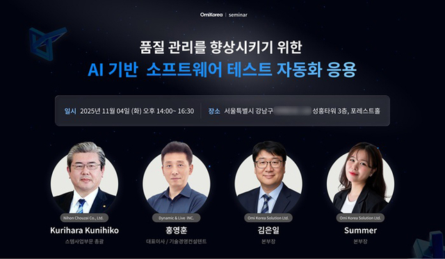 오미코리아제공베트남대표IT아웃소싱기업오미코리아가AI기술을접목한품질관리및테스트자동화의방향성을제시한다.최근IT업계에서는경기불황과비용절감요구가커지면서반복적이고복잡한테스트프로세스를자동화로전환하는움직임이빠르게확산되고있다.실제로글로벌자동화테스트시장은2025년372억달러,2037년에는2,132억달러규모로확대될것으로전망된다.그러나끊임없이변화하는시스템환경과복잡해지는인프라로인해많은IT기업이테스트자동화적용에실질적인어려움을겪고있는상황이다.이에따라AI기반지능형자동화가새로운해결책으로주목받고있다.이러한트렌드에발맞춰오미코리아는‘품질관리를향상시키기위한AI기반소프트웨어테스트자동화응용’을주제로세미나를개최한다.이번세미나는오는11월4일오후2시부터4시30분까지서울강남구성홍타워3층포레스트홀에서열린다.이번행사에는일본의선도적인조제약국체인인일본조제㈜(NihonChouzai)의KuriharaKunihiko스템사업부문총괄,국내AI네이티브개발전문가인㈜Dynamic&LiveINC.의홍영훈대표이사,그리고오미코리아의전문인력들이함께참여한다.더불어베트남,일본,한국등다양한지역에서활동하는국내외저명IT전문가들이참석해최신품질관리최적화트렌드와실질적인품질혁신성공사례를공유하고,업계네트워킹을통한협력방안도논의할예정이다.오미그룹은14년이상일본과유럽등글로벌디지털헬스케어시장을선도해온베트남의대표IT아웃소싱기업으로,300개이상의시스템개발실적과98%에달하는고객유지율,1,000여명의전문인력을바탕으로확고한경쟁력을확보하고있다.오미코리아는2018년한국시장에진출한이후높은비용효율성과품질을강점으로빠르게국내IT시장에자리잡았다.현재는의료분야뿐만아니라이커머스,통신,인공지능등다양한산업으로사업영역을확장하며,국내주요기업및기관과활발한파트너십을구축하고있다.오미코리아관계자는“이번세미나는글로벌시장에서빠르게확산되는AI기반품질관리와테스트자동화의실제적용사례를공유하는자리”라며“베트남IT아웃소싱및AI전환분야에서신뢰받는파트너로서,혁신적인디지털미래를함께만들어가겠다”고말했다.유은규기자[email protected]©디지털타임스.무단전재및재배포금지.