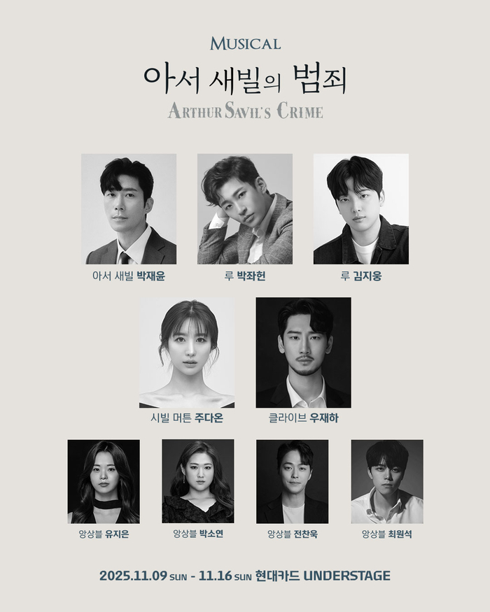 명명은예언되는가,아니면만들어지는가박재윤·박좌헌·김지웅·주다온·우재하출연성종완연출·이진욱작곡·김미연작가합체김수로Curated20뮤지컬‘아서새빌의범죄’이11월9일현대카드UNDERSTAGE에서트라이아웃공연으로첫선을보인다.사진|라이브㈜,㈜더블케이엔터테인먼트[스포츠서울|표권향기자]배우김수로가선봉장으로나선창작뮤지컬이무대에오른다.작품명은김수로Curated20뮤지컬‘아서새빌의범죄’.오는11월9일서울용산구현대카드UNDERSTAGE에서트라이아웃공연으로첫선을보인다.‘아서새빌의범죄’는한국콘텐츠진흥원의‘스토리움우수스토리매칭제작지원사업’에선정돼제작됐다.세계적문호오스카와일드의동명단편소설을원작으로,우연히듣게된세가지예언을통해인정하고싶지않던욕망과마주하게되는배우‘아서새빌’의이야기를프리재즈스타일의음악과무성영화의미장센으로풀어낸다.김수로Curated20뮤지컬‘아서새빌의범죄’메인포스터.사진|라이브㈜,㈜더블케이엔터테인먼트작품의라인업에는현재대학로를주름잡고있는배우들과창작진들이이름을올렸다.1928년무성영화시대의전설적인배우이지만,운명처럼마주한예언앞에서스스로의내면과싸움을시작하는‘아서새빌’역은박재윤이연기한다.그는뮤지컬‘베르테르’‘드라큘라’,연극‘완벽한타인’등에서깊은연기를선보이며이름을알렸다.‘아서새빌’의삶에불길한예언을전하며그의세계에균열을일으키는예언가‘루’역에는박좌헌과김지웅이더블캐스팅됐다.‘아서새빌’의약혼녀이자,영화사오르피움픽쳐스의상속녀로서변화의한가운데에서사랑과야망사이를오가는인물‘시빌머튼’은주다온이맡았다.‘아서새빌’의과거를가장가까이에서지켜본영화평론가이자,그의삶에끊임없이질문을던지는인물‘클라이브’역에는우재하가나선다.창작진도화려하다.뮤지컬‘윌리엄과윌리엄과윌리엄들’‘그여름,동물원’의김연미작가와뮤지컬‘라흐마니노프’‘브라더스까라마조프’의이진욱작곡가,뮤지컬‘사의찬미’‘랭보’의성종완연출이뭉쳤다.김연미작가는원작을바탕으로인간의욕망과예언,예술의본질에대한철학적질문을현대적으로재구성했다.이진욱작곡가는프리재즈의즉흥성과클래식한선율을결합해1920년대할리우드의공기와감정을음악으로되살렸다.성종완연출은무성영화의영상미와무대적리얼리티를교차시키는입체적인시각언어를통해관객이‘아서새빌’의내면과시대의전환점을동시에체험할수있는무대를선보일예정이다.프리재즈의즉흥성과무성영화의몽환적인이미지를결합한새로운형식의창작뮤지컬‘아서새빌의범죄’는11월9~16일현대카드UNDERSTAGE에서공연된다[email protected]©스포츠서울.무단전재및재배포금지.