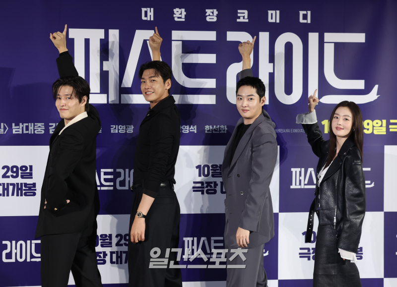 배우강하늘,김영광,강영석,한선화가25일오전서울용산구CGV용산아이파크몰에서열린영화'퍼스트라이드'제작보고회에참석해포토타임을갖고있다.'퍼스트라이드'는절친들이떠나는첫해외여행을그린코미디영화.오는10월29일개봉한다.서병수기자[email protected]/2025.09.25/‘찐친’들의웃기고뭉클한여행기가올가을극장을찾는다.22일오후서울용산구CGV용산아이파크몰에서는영화‘퍼스트라이드’언론시사회및기자간담회가열렸다.이자리에는남대중감독과배우강하늘,김영광,강영석,한선화가참석했다.‘퍼스트라이드’는뭉치면더웃긴24년지기친구들이첫해외여행을떠나면서벌어지는이야기로,영화‘30일’(2023)의주역남대중감독과강하늘이다시의기투합한작품이다.이날남대중감독은“‘30일’보다‘퍼스트라이드’를먼저쓰고기획했다.당시코로나19로해외촬영이어려워지면서‘30일’과순서가바뀌어서나오게됐다”며“영화에‘다음에’라는대사가나오는데,답없는‘다음에’말고현생을즐겁고재밌게살고싶었다”고운을뗐다.이어“내옆에있어주는친구들,넓게생각하면가족,연인까지옆에있는소중한사람들과현생을즐겁게재밌게살아가자는취지로처음이영화를만들었다”며“남겨진사람에대한위로를전하고싶은마음이었다”고부연했다.연출주안점으로는‘찐친’케미를꼽았다.남감독은“이영화는‘찐친’케미와티키타카가절반이상”이라며“내가현장에서가장바랐던것도‘이친구들이실제로친해졌으면좋겠다’였다.근데실제로어렸을때친구들처럼잘지내줘서고마웠다”고만족감을표했다.이에김영광은“그냥너무자연스럽게친해졌다”며“현장에서배우끼리너무재밌다보니그런케미가나왔다.누구하나돋보이려고하는거없이자연스럽게흘러가서이런즐거운케미가만들어진거같다”고떠올렸다.‘30일’에이어남감독과두번째작업을한강하늘은남감독과유쾌했던작업에엄지를치켜세웠다.강하늘은“나뿐만아니라누구든감독님은함께작업하는현장이정말재밌는분이다.이게감독님의가장큰힘”이라며“여러면에서즐겁고재밌는현장이었다”고말했다.극중고등학생역할을소화한것에대해서도언급했다.강하늘은“교복입을나이가지난거같다”면서“눈으로잘못느낄수있는데내가10대교복을입을때는메이크업을했고,현시대30대를연기할때는일상에찌든느낌을살리고자노메이크업으로연기했다”고짚었다.교복이야기에“죄송하다”고말문을연김영광은“더이상입진못할거같다.그런시기가됐다.앞으로는삼가도록하겠다”고약속했고,강영석은“될줄알았는데다시한번심심한사과의말씀드린다”면서도“사실난형들하고같이찍어서걱정은안했다”고너스레를떨어웃음을안겼다.홍일점으로합류한한선화는“이번에연기한옥심이순애보스타일이다.근데원래내가그런스타일이라정말나라고생각했다.많이공감됐다”며“촬영은정말즐거웠다.오빠들과정이많이들었다.너무너무사랑스러운사람들”이라고애정을표했다.한선화는또“우리영화를보며누구나공감되는지점이있을거”라고자신하며“이걸나누고싶다.친구뿐만아니라엄마,아빠,언니,동생모두어린시절이있었지않으냐.이영화를보면서많은걸느낄수있길바란다”고덧붙였다.한편‘퍼스트라이드’는오는29일개봉한다.장주연기자[email protected]©일간스포츠.무단전재및재배포금지.