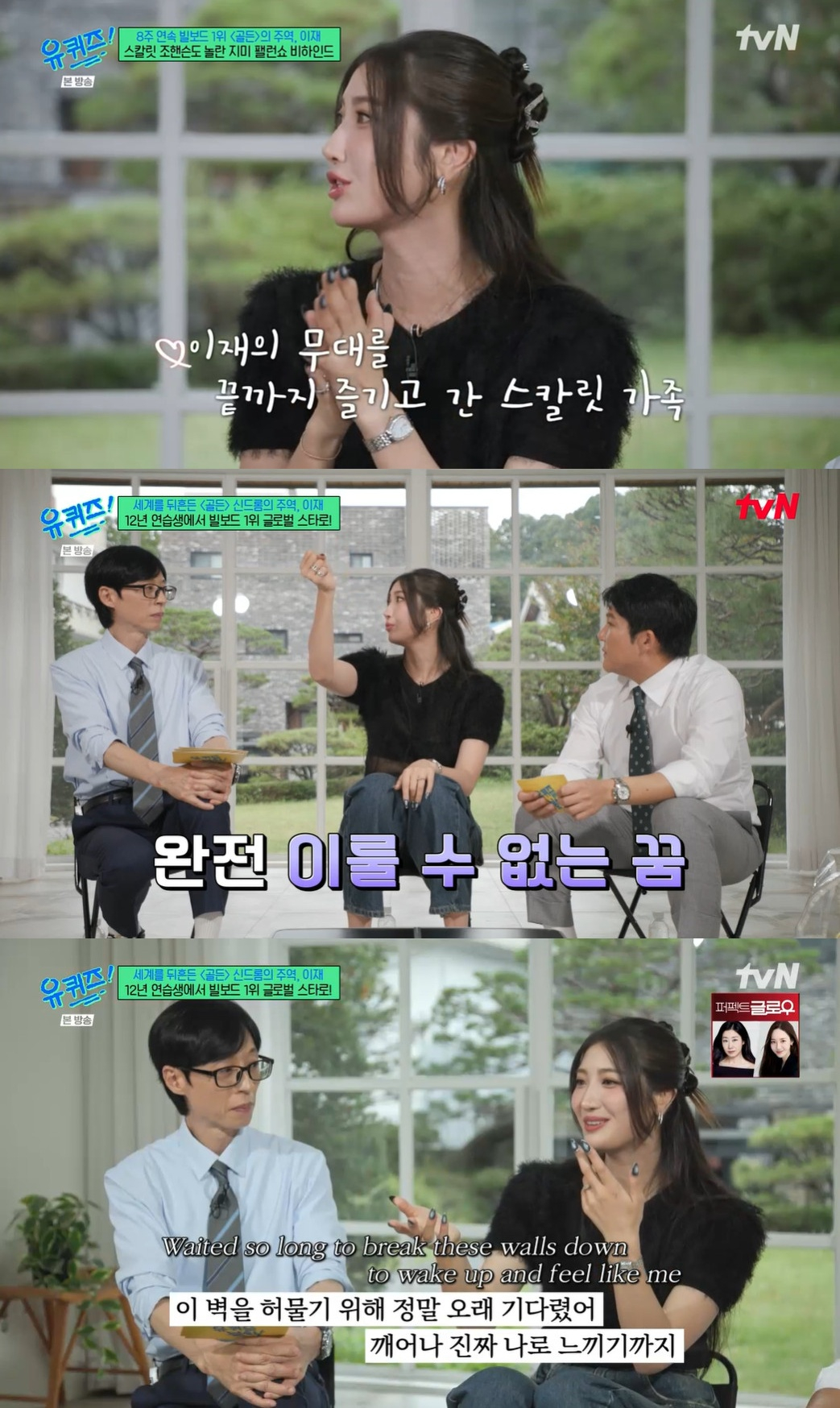 [스타뉴스|안윤지기자]/사진=tvN예능프로그램'유퀴즈온더블럭'방송캡처'유퀴즈'가수겸작곡가이재가SM엔터테인먼트연습생시절을전했다.22일방송된tvN예능프로그램'유퀴즈온더블럭'(이하'유퀴즈')에서는작곡가겸가수이재가출연했다.이재는"초등학교2학년때한국으로이사왔다.슈퍼주니어,소녀시대,샤이니,에프엑스,엑소멤버들과같이연습했다.새벽7시에연습실에가고밤11시에나왔다.유리언니가보컬연습할때들어왔다.언니가'넌진짜뭔가될거같다.너무열심히해!무조건성공한다'고했다.6시간춤연습하고6시간노래연습했다"라고과거를돌아봤다.그는"13살때인가중간에기절했다.최강창민선배님이들어오니까깬거였다.기절한건못봤고얘기하기도싫었다.나갔을때엉엉울었다"라며"SM이랑아이디어도안맞았다.그때트렌드는깨끗한느낌이었다.내가목소리를계속바꾸려고했다.그때는노래를잘하지도않았고나이가많았다.20대초반이었다"라고전했다.유재석은"데뷔기회보단시기적으로잘맞지않았다"라고안타까워했다.이재는"난항상연습생이었다.나도열심히했는데데뷔안했지?많이부족한가보다.나자신에게실망했다"라며"계약끝나고택시타고가는데눈물이나더라.창문에비흐르면눈물같지않나.그렇게열심히했는데이렇게됐나싶어서인생어려웠다.상처가컸다"라고털어놨다.그는넷플릭스애니메이션영화'케이팝데몬헌터스'의OST'골든'에대해서설명했다.이재는"모든노래는메기강감독님이가이드라인을줬다.그때완전비현실적인음을만들라고했고,그게닿을수없는꿈을뜻하는거였다"라며"내목소리가콤플렉스였다.너무어둡지않나.연습생시절콤플렉스였기때문이었다.내목소리너무거친거같아서무서웠다.어릴때'올드하다'란말을하니걱정했는데좋아해줘서자신감이생겼다"라고이야기했다.한편'유퀴즈'는매주수요일오후8시45분에방송된다.안윤지기자[email protected]©스타뉴스&starnewskorea.com,무단전재및재배포금지