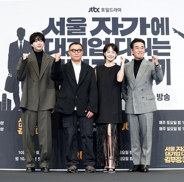 김부장이야기제작발표회/사진=팽현준기자[스포츠투데이송오정기자]'서울자가에대기업다니는김부장이야기'가전세대가공감할수있는"행복"에대한이야기를전한다.22일오후더링크서울호텔에서JTBC새토일드라마'서울자가에대기업다니는김부장이야기'(이하'김부장이야기')제작발표회가진행됐다.현장에조현탁감독을비롯해류승룡,명세빈,차강윤배우가참석했다.동명의소설을원작으로하는드라마'김부장이야기'(극본김홍기윤혜성·연출조현탁)는자신이가치있다고생각한모든것을한순간에잃어버린한중년남성이긴여정끝에마침내대기업부장이아닌진정한본인의모습을발견하게되는이야기를그린다.◆15년만에TV드라마복귀,목표는시청률두자릿수류승룡은맨처음"촬영을마무리한지한달밖에안됐는데이번주에공개되니어리둥절하다"라는소감을밝혔다.사실이번작품은류승룡에게있어드라마'개인의취향'이후로15년만의TV드라마작품이다.TV드라마인만큼시청률에대한부담감도컸다.류승룡은"김부장이란중년의이야기를내세우지만누군가의미래,누군가의과거또우리,나의이야기다.전세대를아우를수있는,투영할수있는드라마라생각된다.특정세대에국한되지않고누구나공감할수있는이야기라시청률이어떻게될지궁금하다"라고말하며"(시청률)두자리넘기고싶다"라고목표를밝혔다.작품을보는연령대에따라느끼는감정이나생각도다를것으로예상됐다.주인공김낙수와다른연령대는어떤부분에공감할수있을까.류승룡은"저는마흔에스마트폰을처음만져봤고살아온방법도경쟁도,살아남은방법도다르다.김낙수는서울,자가,대기업,부장등을행복이라생각하는캐릭터다"면서"서툰방법을통해아들과대화하는데고구마다.중간에서아들이힘들어한다.극이진행됨에따라서로를이해하는지점이있다.최선의방법이그것일뿐,그래서측은지심이생긴다.그게좋은방법이라생각하는거다.그리고시대상,세대상을이해할수있는부분이어필될거같다"라고말했다.'꼰대'부장김낙수역으로분하게된류승룡은"원작에잘표현돼있고,또주변에꼭있지않나.누구나봐도보편적인인물과느낌들,내안에혹은누구에게나있을수있다"라며연기에중점을둔부분을설명했다.이어"김낙수가짊어진게많다.'웃픈'모습이많다.꼰대같지만미워할수없는,건강한책임감과무게를내려주고응원하고싶은.우리네세대를보면서서로간이해의폭이좀생기면좋겠다란생각을했다"라며캐릭터포인트를밝혔다.작품제목에'서울''자가''대기업''부장'등의키워드가보편적인공감대를모을수있을것인가에대한의문이있었다.조현탁감독은"주인공이50대중년의부장이다.20~30대시청자가공감할수있을까싶었다.세대단절이라는전세계적인흐름도있을거다.이작품이대안을제시할수있으면좋겠다란게평상시제생각이었다.디테일하게사람들이느낄수있고,때론웃다가울고그것이내아버지의이야기혹은내미래가될수있단걸담으려고했다.◆"행복이란무엇인가"이번작품은원작소설부터베스트셀러일정도로인기작품을드라마화했다.조현탁감독은"연재되는동안에도읽고있었다"면서원작에대한애정을드러냈다.이어"김낙수가저와비슷한연배의주인공이라그런지연출을하고싶었다"면서"이번작품은원작소설의작가님이촬영현장에함께하시곤했다.작품을진행하는동안굉장히좋은이야기를주고받았고대본에대해서도허심탄회하게얘길했다.드라마에적극적으로참여해주셨고대본작업부터도움을많이받았다"고말했다.그렇다면원작과차별화된부분은무엇일까.조감독은"김낙수캐릭터를류승룡님이해주신것이완벽한차별화라고생각한다.류승룡이김낙수인지,김낙수가류승룡인지완벽한몰입과놀라움을경험했다.실질적으로만들어진걸봐주시면새로운모습을경험하실수있을것"이라고말했다.지난해6월종영한판타지드라마'히어로는아닙니다'를연출한조현탁PD는이번엔현실적인우리네삶을다룬이야기로돌아왔다.그러나조현탁PD는"리얼한현실베이스의이야기지만실은달라질건없다고생각한다"고말했다.가장중요했던연출포인트는"'시청자가얼마나재미있게받아들일까'이게가장중요한출발이었다"라고말했다.조PD는"현장에가면이미승룡선배님이나모두가극중캐릭터로완전히준비가돼와주신다.그러면그것을하루종일잘이야기나눠서잘담아내는것,순간적으로발생하는좋은것들을잘담아내는것에중점을뒀다.어떻게보면'김낙수'캐릭터를촬영내내보게된건데,연기라든가준비해온것과순발력을최선을다하고있다"라고설명했다.류승룡은'김부장이야기'를통해"행복이란무엇인가"를화두로던지고자했다.류승룡은"내가생각하는가치를'서울''자가''부장''대기업'등,정말그걸다이루면불행한것인가?그걸다우리면서진정한행복을찾아가고있는거다.무엇을가치있게두고무엇을당연하게여기고살아가고있지않은가,생각을갖게된다면이작품이의미가있을거같다"라고말했다.한편'김부장이야기'는10월25일첫방송을시작으로매주토,일밤10시40분에방송된다.[스포츠투데이송오정기자[email protected]]Copyright©스포츠투데이.무단전재및재배포금지.