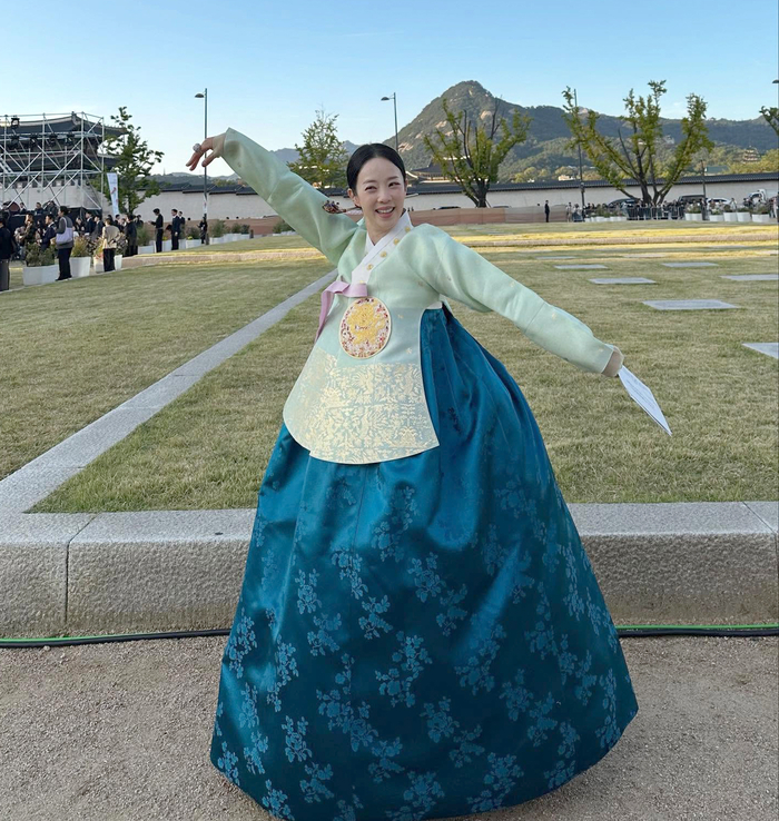 사진|박은영SNS[스포츠서울|최승섭기자]방송인박은영이임신27주차에도변함없는아름다움과열정을과시했다.박은영은지난21일자신의SNS에“청명한가을하늘경복궁앞에서펼쳐진2025한복문화주간기념행사.임신27주D라인도감쪽같죠ㅋㅋ오랜만에한복입으니신나서얼쑤~~”라는멘트와함께여러장의사진을공개했다.공개된사진속박은영은밝은옥색당의(저고리)에청록색치마를매치한기품있는한복차림으로경복궁앞뜰잔디밭에서포즈를취하고있다.만삭에가까운임신27주차라는사실이믿기지않을만큼날씬하고단아한모습으로,한복치마의풍성한라인이D라인을완벽하게감추는효과를보여줬다.특히하늘을향해팔을활짝펼치며‘얼쑤’포즈를취하는사진에서는여전히활기차고유쾌한그의매력을그대로보여줬다.올해44세인박은영은지난2019년3살연하사업가와결혼해슬하에1남을두고있다.지난7월유튜브를통해시험관시술끝에둘째를임신했다는소식을전했다.둘째예정출산일은2026년1월로알려졌다[email protected]©스포츠서울.무단전재및재배포금지.
