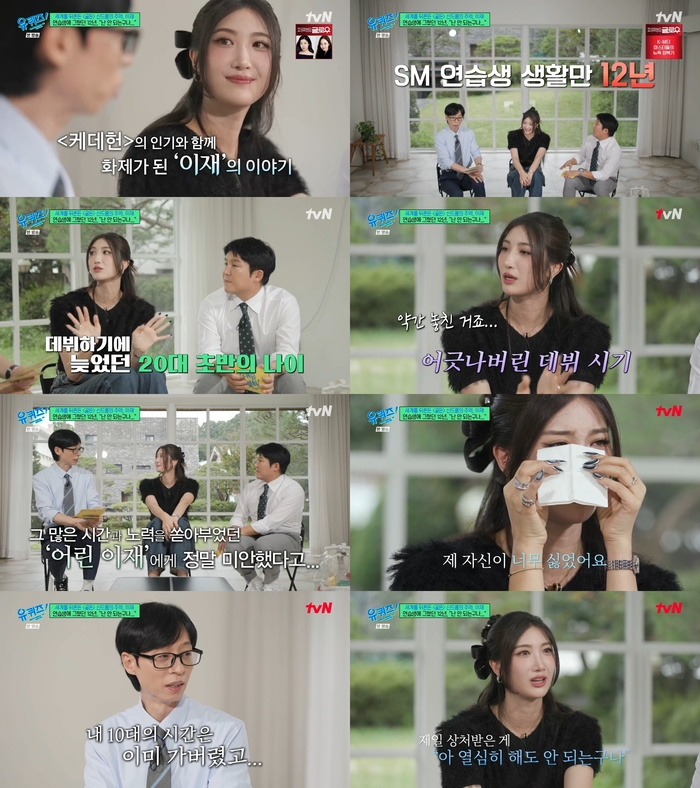 ‘유퀴즈온더블럭’.사진ItvN‘유퀴즈온더블럭’방송캡처작곡가겸가수이재가SM연습생시절을회상했다.22일방송된tvN‘유퀴즈온더블럭’에는전세계를휩쓴‘케이팝데몬헌터스’OST인‘골든’의주인공이재가게스트로출연했다.이날이재는SM엔터테인먼트연습생생활만12년을했다며“슈퍼주니어,소녀시대,샤이니,에프엑스랑동기다”라고입을열었다.이재는연습생생활에대해“아침7시에먼저연습실에갔다.그리고밤11시에마지막으로나왔다.진짜열심히했다.돌이켜보면어린나이에그렇게열심히한게신기하다”고떠올렸다.이어“아직기억에남는게있다.내가보컬연습하고있는데유리가들어왔다.유리가나한테‘너는뭔가될것같다.너무열심히한다.무조건성공한다’라고했다”고미소지었다.이재는열심히연습했지만,SM에서데뷔하지못했다.이재는“SM이랑약간결이안맞았다.그때SM의트렌드목소리가깨끗한느낌이었다.그래서내가목소리를바꾸려고했다.그리고데뷔하기에는나이가너무많았다”고이야기했다.이재는“단계가있지않냐.연습생,데뷔준비생.나는항상연습생이었다.‘나도열심히하는데왜나는데뷔못할까?나는많이부족한것같다’나자신한테실망이많았다”고말했다.이어“계약끝나고택시타고집에오는데눈물이났다.그렇게열심히했는데이렇게됐다고?너무상처가컸다.인생이어렵구나싶었다”고했다.그러면서“계약해지보다더슬펐던게그많은시간과노력을쏟아부은어린나한테너무미안했다.그많은시간을연습한게너무아까웠고유리가한이야기도생각났다.나한테는그런순간이안오는구나싶어서그냥너무미안했다.오랫동안가수가되고싶었는데그걸이뤄주지못한나자신이너무싫었다.‘열심히해도안되는구나’를느꼈다.그실망감이제일컸다”며눈물을흘렸다.[이세빈스타투데이객원기자]Copyright©스타투데이.무단전재,재배포및AI학습이용금지