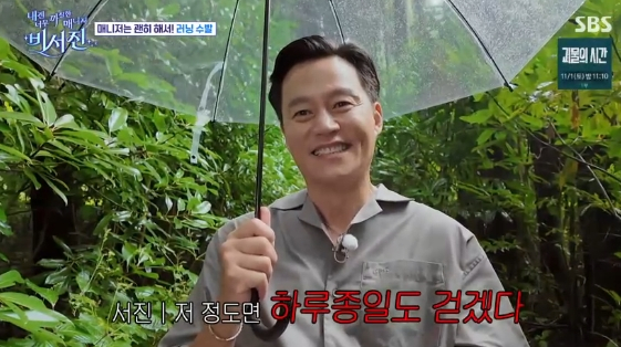 [스타뉴스|김정주기자]/사진=SBS예능프로그램'내겐너무까칠한매니저-비서진'배우이서진과김광규가우중러닝에도전했다.24일방송된SBS예능프로그램'내겐너무까칠한매니저-비서진'(이하'비서진')에는오는11월12일첫방송되는SBS새수목드라마'키스는괜히해서!'의주역인장기용과안은진이네번째'my스타'로출연했다.이날드라마촬영을위해제주도에도착한안은진은숙소에도착하자마자이서진과김광규에게러닝을제안했다.그는이서진을향해"바다가저희를부르고있으니까날씨도좋아진김에산책한번어떠세요?"라고물었다.이에이서진은"비오는데?난옷이없어"라며우회적으로반대의견을냈으나안은진과장기용의애교섞인설득에결국두손을들었다.이서진은제작진에게"뛰는거제일싫어한다.빠져나가려고했다"고속마음을전해웃음을안겼다./사진=SBS예능프로그램'내겐너무까칠한매니저-비서진'네사람은바닷가를보며천천히달리기시작했고,김광규는빠른걸음으로걷는이서진을뒤따라힘겨운발걸음을내디뎠다.이서진은끙끙앓는소리를내는김광규를보며웃음을참지못했다.이서진은"내가뛰었으면광규형은죽었다.빨리뛰는건줄알았는데이정도면하루종일도걷겠다"라고자신만만한표정을지었다.반면김광규는자신이사수하던클러치백을안은진과장기용에게넘기며"매니저못하겠네"라고한숨을쉬었다.안은진과장기용의보조에3km러닝에성공한김광규는"놀라운경험이었다.온몸에땀구멍이다열리는느낌이다.무릎이아프다"라고울상을지었다.김정주기자[email protected]©스타뉴스&starnewskorea.com,무단전재및재배포금지