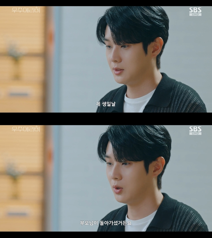 ‘우주메리미’.사진ISBS‘우주메리미’방송캡처‘우주메리미’최우식이정소민에게부모님의사고에대해이야기했다.24일방송된SBS‘우주메리미’에서는김우주(최우식분)의생일을챙기는유메리(정소민분)의모습이그려졌다.이날김우주는자신의생일이부모님의기일이라홀로생일을보내고있었다.뒤늦게김우주의생일을알게된유메리는김우주에게집으로오라고했다.유메리는김우주를위해생일상을준비했다.김우주는“미역국진짜오랜만에먹는다.한8살땐가?그때이후로처음인거같은데.왠지먹으면안될거같아서요.제생일날부모님이돌아가셨거든요.저때문에.그래서미역국대신밥만왕창먹었어요.밥많이먹으면졸리고,졸리면자고,자고일어나면날이바뀌었으니까”라고털어놨다.유메리는“잘했어요.그거365일이나되는데하루정도그냥지워버리면어때요?원래힘들때는냅다도망치는게짱이에요.우리밥많이먹고힘이나모아요”라고위로했다.한편‘우주메리미’는매주금,토요일오후9시50분방송된다.[이세빈스타투데이객원기자]Copyright©스타투데이.무단전재,재배포및AI학습이용금지