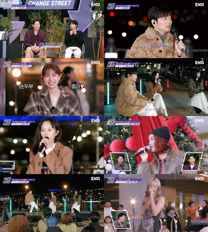 ENA‘체인지스트릿’방송화면캡처‘체인지스트릿’아티스트들의진심어린라이브가밤공기를가르며국경을허물었다.지난20일ENA에서방송된한일국교정상화60주년초대형프로젝트‘체인지스트릿(ChangeStreet,연출:오준성)’8화에서는일본요코하마아카렌가창고와서울구의역NC이스트폴에서각각펼쳐진한일팀의버스킹현장이전파를탔다.‘체인지스트릿’은한국과일본을대표하는아티스트들이서로의거리와언어,감성속으로스며들어음악으로교감하는신개념문화교류프로그램이다.한국팀의포문은배우정지소가열었다.드라마‘화랑’OST인볼빨간사춘기의‘드림’을선곡한그는청아한음색과섬세한표현력으로현장을단숨에사로잡았다.이를지켜본마마무휘인은“뮤지컬을보는것같았다”고극찬했고,KENJI03는“컬래버를해보고싶다.둘다하이톤보컬이라잘어울릴것같다”고러브콜을보냈다.스페셜게스트로출연한마마무휘인은드라마‘도깨비’OST크러쉬의‘Beautiful’로깊은여운을남겼다.어둠이내려앉은공간위로번진그의아련한보이스는관객들의환호와어우러져짙은감동을완성했다.배우이동휘는“원곡자와아는사이지만오늘무대가더좋았다”고재치있는감탄을전했다.이어정지소는드라마‘해를품은달’OST린의‘시간을거슬러’를부르며한층깊어진감성을선보였다.정지소만의청아하고맑은음색이노래의무드와극강의조화를이루며애틋한그리움과절절한서사를섬세하게끌어올렸다.휘인은영화‘내머리속의지우개’OST거미의‘날그만잊어요’로멜로감성을극대화했다.이동휘는“출연료에서휘인씨콘서트비용을빼고받겠다”고농담을던졌고,MC신동엽은“위인전이아니라‘휘인전’을써야할것같다”고재치있게화답해웃음을자아냈다.일본팀은각자의색을앞세워또다른감동을선사했다.카와사키타카야는무대에앞서폴킴의‘모든날,모든순간’을일본어버전무반주라이브로선보이며설렘을더한데이어일본포크록밴드오프코스의‘사요나라’를담백하게소화하며애절함을전했다.메이제이는나카시마미카의‘눈의꽃’을선곡해현장을아울렀다.국내에서도박효신의리메이크로사랑받은곡인만큼관객들은자연스럽게호응을얹었다.크리스탈케이는일본국민가수미소라히바리의‘흐르는강물처럼’을완벽한라이브로재현했고,이를들은강남과KENJI03는“원곡을겹쳐놓은듯하다.라이브가맞냐”며감탄을아끼지않았다.코다쿠미는버블검브라더스의‘WON’TBELONG’으로흥을끌어올린뒤,발매당시일본에서폭발적인인기를끌었던자신의히트곡‘사랑의노래’로깊은여운을남겼다.그는“25년음악인생동안버스킹은처음이었다.막상무대에서니후회가밀려왔지만음악에집중해준관객들을보며‘음악에는국경이없다’는걸다시느꼈다”고진심어린소감을전했다.‘체인지스트릿’의시그니처코너‘스트릿송’에서는휘인이오니츠카치히로의‘월광’으로인생첫J팝라이브에도전했다.단단한음색과섬세한감정조율이어우러진무대는프로그램의취지를상징적으로보여줬다.방송말미에는‘체인지스트릿’의마지막라인업이깜짝공개됐다.카라허영지,아스트로윤산하,펜타곤후이,HYNN(박혜원),그리고일본팀의미와,카노우미유가합류를예고하며기대감을고조시켰다.글로벌음악예능프로그램‘체인지스트릿’은㈜포레스트미디어,㈜한강포레ENM,ENA가공동제작하며,매주금요일밤11시ENA에서방송된다.매회새로운느낌의편곡,풀밴드와한일아티스트의목소리로명곡들을색다르게즐길수있는‘체인지스트릿’음원은매주토요일정오주요음악사이트에서공개되며,버스킹영상풀버전은‘체인지스트릿’공식유튜브채널에서감상할수있다.손봉석기자[email protected]©스포츠경향.무단전재및재배포금지.