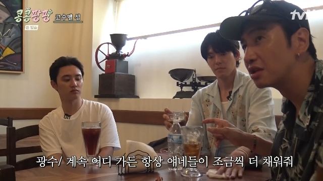 tvN‘콩심은데콩나서웃음팡행복팡해외탐방’캡처tvN‘콩심은데콩나서웃음팡행복팡해외탐방’캡처[뉴스엔서유나기자]배우이광수가배우김우빈,배우겸엑소멤버도경수를향한외사랑에폭발했다.12월5일방송된tvN예능'콩심은데콩나서웃음팡행복팡해외탐방'(이하'콩콩팡팡')8회에서는KKPP푸드대표이사이광수,감사김우빈,본부장도경수의회사발전을위한인사이트탐구목적멕시코해외탐방기가이어졌다.이날이광수는김우빈,도경수손에우정링이없는걸발견했다.김우빈과도경수는"아까아침에씻으면서트레이닝바지에넣었는데그트레이닝바지가가방에있다","나도트레이닝바지에있다"고변명했으나이광수는폭발해반지를뺐다.이에김우빈과도경수가"왜빼냐.끼고있으라"고하자이광수는"아닌것같다.너네둘다뭐냐.이게무슨의미냐.나만바보냐.나수영할때도이거끼고있었다.숨겨야되는이유가있나보지?나진짜미치는꼴보고싶냐.왜안끼냐"고따졌다.혼자만우정에진심인이광수는제작진과의인터뷰에서"아니이거내가하자고한것도아니고모르겠다.이우정이나한테만소중한건지,이런증표가나한테만중요한건지.나도이런느낌싫다.난애초에이런외사랑스타일이아니다"라고하소연했다.뉴스엔서유나stranger77@기사제보및보도자료[email protected]ⓒ뉴스엔.무단전재&재배포금지Copyright©뉴스엔.무단전재및재배포금지.