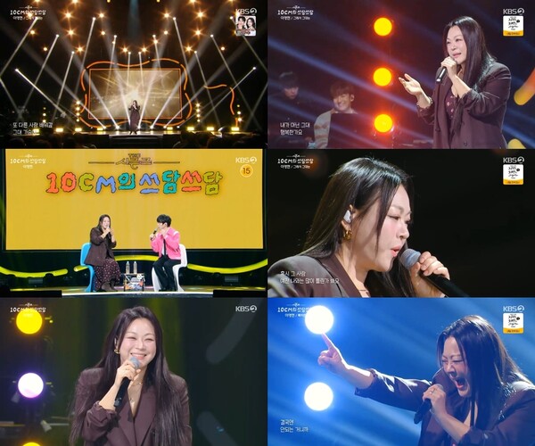 ▲30일방송된'더시즌즈'에서노래하는이영현.방송화면캡처[스포티비뉴스=김원겸기자]가수이영현이섬세한라이브와폭발적인가창력으로디바의저력을보여줬다.이영현은지난30일방송된KBS2뮤직토크쇼‘더시즌즈-10CM의쓰담쓰담'에출연했다.이날2022년에발매한'그래서그대는'으로첫무대를꾸민이영현은섬세한감성과듣는가슴을울리는애절한보이스로깊은감동을선사했다.지난해10cm의'춤'보컬챌린지에참여하며인연을맺었던이영현은당시비하인드스토리를전했다.그는"회사의다른가수에게온제의인줄알았는데저에게와서의외였다.전혀생각하지도못했던조합이라어떻게해서든제스타일로잘해봐야겠다는생각에정말많은연습을했다"고회상했다.올해로데뷔24년차를맞이한이영현의풋풋한대학시절영상도공개됐다.'강변가요제'출연당시의VCR영상이재생되자이영현은"제가00학번인데98학번선배가쓴곡에가수로참여해달라는제의를받고나가게됐다”며가요계에첫발을들인계기를설명했다.이어"당시에재즈보컬전공이었다.강변가요제후휴학을하던중에빅마마를기획하시던분이저에게가이드보컬을부탁하셨다.그때부른곡이거미의'그대돌아오면'이었다.그곡이저의오디션테이프가되어서저도모르는사이에데뷔준비가진행이됐다.감사하게도연습생시절도거치지않고바로데뷔를하게됐다"고덧붙여놀라움을자아냈다.최근신곡'툭하면'을발매한이영현은"이별을앞두고여러감정이드는데그감정속에서생각이드는심리상태를그려냈다"고소개하며이어펼쳐진무대에서절절한이별의감성과호소력짙은목소리로곡을완벽히소화하며시청자들에게묵직한여운을남겼다.<저작권자ⓒSPOTVNEWS.무단전재및재배포금지>Copyright©스포티비뉴스.무단전재및재배포금지.