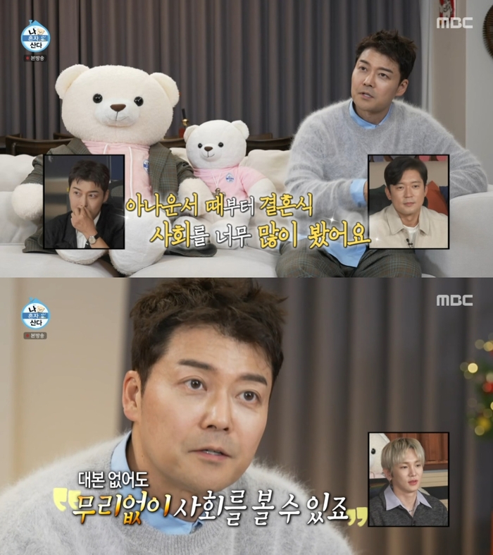‘나혼자산다’.사진IMBC‘나혼자산다’방송캡처방송인전현무가결혼식사회에자신감을드러냈다.5일방송된MBC‘나혼자산다’에서는이장우의결혼식현장이공개됐다.이날전현무,기안84는숍에서헤어,메이크업을받은후택시를타고결혼식장으로향했다.결혼식사회를맡은기안84는전현무에게조언을구하는가하면“나진짜불안해지면대신사회좀봐달라”며긴장한모습을보였다.전현무는“아나운서때부터결혼식사회를많이봤다.한1000건되지않을까.이제결혼식사회가들어와도긴장을전혀안한다.대본도없이한다”고자신감을드러냈다.이에기안84는“전현무는결혼식사회로책을써도될것같다”고했고,코드쿤스트는“결혼식사회의정석”이라고거들었다.한편‘나혼자산다’는매주금요일오후11시10분방송된다.[이세빈스타투데이객원기자]Copyright©스타투데이.무단전재,재배포및AI학습이용금지