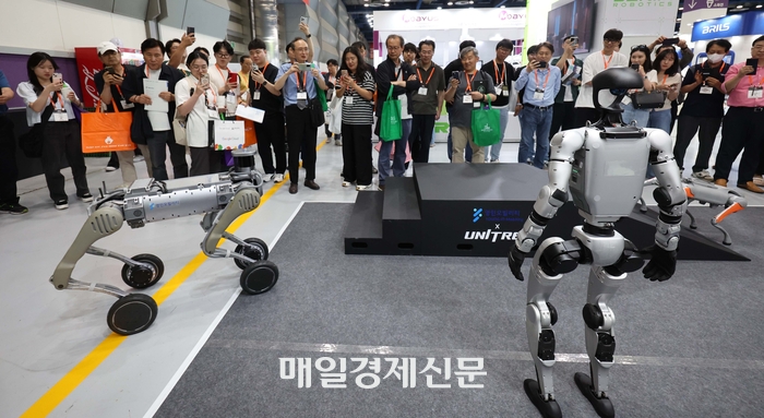 스마트테크코리아2025개막로봇이커피타고24시간경비브릴스·마음A등부스북적AI두뇌탑재한스마트로봇제조·유통·국방전방위확산“AI,사이버공간넘어현실로”11일서울강남구삼성동코엑스에서열린‘2025스마트테크코리아’를찾은관람객들이유니트리의휴머노이드로봇‘G1’과사족보행로봇을살펴보고있다.2025.6.11[한주형기자]11일서울강남구삼성동코엑스전시관C홀.강아지크기의사족보행로봇이눈길을끌었다.마음AI가자체개발한인공지능(AI)자율경비로봇‘소라(SORA)’다.“주변을순찰하고와”라고지시하자소라는장애물을감지하는라이다로주변을빠르게스캔하며움직이기시작했다.정해진구역을돌아다니며실시간으로사람들의움직임을파악하면서사진을촬영하고,이를지휘소역할을하는전시부스내의중앙컴퓨터로전송했다.마음AI관계자는“소라는주택은물론군부대초소와같이지형이불안정한곳에서도자유자재로움직이며24시간순찰이가능하다”면서“사람들의움직임뿐만아니라화재·연기·소리등비상상황을감지할수있다”고설명했다.이관계자는이어“촬영한사진은10초내로분석해특이사항이있으면‘순찰중연기패턴감지’와같은메시지를위치정보와함께전달한다”고덧붙였다.마음AI는도슨트역할을하는안내로봇등일상에서구현되고있는다양한로봇활용사례도소개했다.국내최대비즈니스테크쇼‘스마트테크코리아2025’가이날사흘일정으로막을올렸다.행사가열린코엑스전시관에는이른아침부터기업·일반관람객수천명이몰려AI와로봇등일상생활에깊숙이스며든신기술을체험했다.11일서울강남구삼성동코엑스에서열린‘2025스마트테크코리아’를찾은관람객들이전시물을살펴보고있다.2025.6.11[한주형기자]‘미래를연결하다’를주제로열리는이번행사는△스마트테크쇼△AI&빅데이터쇼△디지털유통·물류대전△로봇테크쇼△시큐테크쇼△글로벌공급망혁신대전(GSCKorea)등6개주제별전문전시로마련됐다.매일경제·MBN·한국인공지능산업협회등이주최·주관하고,한국소프트웨어산업협회가후원한다.올해는500여개기업이1500여개부스를마련해역대최대규모를기록했던지난해보다도참가기업이훌쩍늘었다.2022년11월챗GPT등장이래생성형AI서비스가우리일상에없어서는안될존재로자리매김하고있는가운데시장에서는생성형AI의뒤를이을기술로로봇과AI의융합을의미하는‘피지컬AI’를주목하고있다.이같은트렌드를반영해올해행사에선가지각색의피지컬AI기술을직간접적으로경험할수있는체험관이인기를끌었다.11일서울강남구삼성동코엑스에서열린‘2025스마트테크코리아’를찾은관람객들이전시물을살펴보고있다.2025.6.11[한주형기자]11일서울강남구삼성동코엑스에서열린‘2025스마트테크코리아’를찾은관람객들이전시물을살펴보고있다.2025.6.11[한주형기자]국방AI전문기업펀진은AI드론과연계해사용할수있는온디바이스AI기술을전시했다.적군표적을탐지하고식별하는알고리즘,정찰부터최적의공격전술을스스로도출하는AI까지온디바이스로구동할수있는것이특징이다.로봇전문기업인브릴스는물류현장에서활용되는자율이동로봇(AMR)을비롯해용접로봇,바리스타로봇,협동로봇등을대거선보였다.산업용및콘텐츠용AI솔루션기업들도이목을끌었다.이스트소프트는AI휴먼기술과함께AI영상더빙기술인‘페르소닷ai(PERSO.ai)’를선보였다.자체대형언어모델(LLM)‘큐원’으로오픈AI·구글과경쟁하고있는중국알리바바클라우드는메가존소프트와함께부스를열고기업용AI모델을소개하기도했다.아이티센피엔에스는미래형보안기술‘양자내성암호(PQC)’기반디지털인증솔루션‘엣지큐월렛(EdgeQWallet)’을선보였다.11일서울강남구삼성동코엑스에서열린‘2025스마트테크코리아’를찾은관람객들이전시물을살펴보고있다.2025.6.11[한주형기자]11일서울강남구삼성동코엑스에서열린‘2025스마트테크코리아’를찾은관람객들이전시물을살펴보고있다.2025.6.11[한주형기자]이날행사와함께진행된기술콘퍼런스‘테크콘’의화두도AI와로봇이었다.한국로봇계석학으로꼽히는여준구대동로보틱스대표가기조연설자로나서로봇역사의흐름과피지컬AI로의전환에대해설명했다.여대표는미국국립과학재단(NSF)디렉터(이사)등을지낸전문가로현재대동로보틱스를이끌며농업용로봇을개발하고있다.여대표는“AI기술이사이버공간을넘어물리적인공간으로나오게되면혁명적변화가일어나게된다”며“그연결고리가무인차량이나로봇이될것”이라고강조했다.그러면서“2022년챗GPT가나온이후많은기업이휴머노이드개발에뛰어들었는데AI다음에다가올웨이브(물결)가바로피지컬AI이기때문”이라고설명했다.여대표는AI와로봇을결합한피지컬AI시장이빠르게커지면서단순히로봇을개발하는회사뿐만아니라로봇특화AI모델을만드는회사와로봇제어소프트웨어개발업체등로봇응용분야기업들이기회를잡을것으로전망했다.13일까지이어지는스마트테크코리아2025는전시관람,수출상담등을통해기업간비즈니스가교역할도수행한다.국내AI산업을이끌어나갈기업을시상하는‘제5회대한민국인공지능산업대상’은12일오전에진행된다.Copyright©매일경제&mk.co.kr.무단전재,재배포및AI
