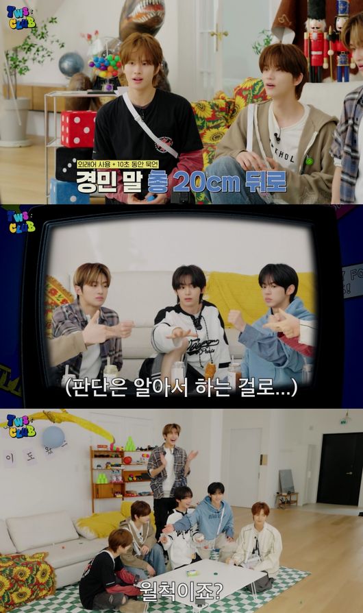 [OSEN=지민경기자]그룹TWS(투어스)가공식예능멤버를뽑기위한뜨거운웃음전쟁을벌였다.TWS(신유,도훈,영재,한진,지훈,경민)는지난10일팀공식유튜브및글로벌슈퍼팬플랫폼위버스(Weverse)채널에정규자체콘텐츠‘TWS:CLUB’의새에피소드‘예능게임도장깨기프로젝트#1’편을공개했다.영상에서는각종예능프로그램의인기게임들을진행하며진정한예능인재를가리는멤버들의모습이그려졌다.TWS는유쾌한입담으로한층강력해진예능포텐을터뜨렸다.본격적인게임에앞서고깔로눈을가리고숨겨진음료쿠폰을찾는몸풀기게임이펼쳐졌고,멤버들은앞다투어“순수시력이좋다”,“라식했다”라며능청스러운멘트를쏟아냈다.즉석팔씨름대결에서는도훈이“팀내왼손팔씨름1등,오른손팔씨름2등”이라며허세를부렸지만,막내경민과의첫경기에서허무하게패배해큰웃음을줬다.인물퀴즈에서는TWS의‘나락감지’레이더가연신작동했다.선후배의얼굴을맞춰야하는부담감속에게임을시작한이들은틀릴때마다90도로‘폴더인사’를하고폭풍사과를이어갔다.멤버들은탈락한멤버를향해“큰일났다”,“이건쉴드불가다”라고가차없이손절해깨알재미를선사했다.이어진테이블알까기게임은‘외래어사용금지’미션이추가돼긴장감이더욱고조됐다.TWS는튀어나오려는외래어를간신히한국어로바꿔말하며순발력을뽐냈고,극도로말을아낀나머지“좋아요”,“나빠요”만반복해웃음을안겼다.영상말미에는간지럼태우기,고요속의외침등다양한게임을섭렵하는멤버들의모습이짧게예고돼다음에피소드를향한궁금증을키웠다.‘TWS:CLUB’은무대밖TWS의남다른예능감을담은자체콘텐츠시리즈다.여섯멤버들의친근하고장난기넘치는모습은물론,유쾌한연출과편집으로팬들이편하게볼수있는‘밥친구’예능을지향한다.한편TWS는오는20~22일서울송파구잠실실내체육관에서첫단독콘서트‘2025TWSTOUR‘24/7:WITH:US’INSEOUL’을연뒤,7월부터는일본6개도시에서총13회에걸쳐현지팬들과만난다./[email protected][사진]플레디스엔터테인먼트Copyright©OSEN.무단전재및재배포금지.