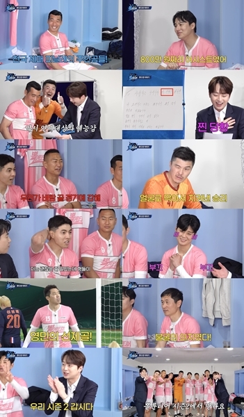 ‘뽈룬티어’사진|KBS‘뽈룬티어’가시즌2를바라는시청자들의성원속에종영후에도뜨거운열기를이어가고있다.지난주KBS스포츠유튜브채널에는‘뽈룬티어시즌1을마치며...’라는제목의비하인드영상이게재됐다.전국제패파이널매치서울경인연합과경기후락커룸의모습을담은영상이었다.서울경인연합을상대로승리를거두며풋살전국제패에성공한것은물론,숙적김포Zest를꺾은흥분감으로락커룸은들썩였다.서울경인연합과2승2패를기록하며벼랑끝에몰렸던‘뽈룬티어’는경기종료직전백지훈의어시스트를받은조원희가환상적인결승골을터트리며각본없는드라마를썼다.조원희는발목뼈부상을입고도아내에게출연동의서까지받아오며투혼을펼쳐감동은두배가됐다.그런데이찬원이이동의서내용중‘사랑하는아내이자내전부인’이라쓰여진부분을‘前부인’으로오해해폭소를자아냈다.김영광은“역시연예대상”이라며이찬원의예능감에박수를보냈다.특히‘뽈룬티어’멤버들의몸을던진플레이가빛을발했다.골레이로김영광은LIFEFC와의경기에서‘뽈룬티어’첫골을터트린데이어,김포Zest의강력한슈팅을얼굴로막아내며팀을위기에서구해낸바있다.수비핵심김동철또한은평FS와경기중충돌로인해머리에강한충격을받았지만승리에대한집념으로이겨냈다.이찬원은“오늘전가을선수의위대함을알게됐다.20대현역선수들을상대로압도적인기량을보여줬다”라며감탄했다.전가을은서울시청아마조네스와의경기에서2득점으로맹활약하며레전드의위엄을보여줬다.같은경기에서현영민은선제골을넣고도폭발적인야유를받아웃음을자아냈다.‘뽈룬티어’는평균나이41.4세은퇴한축구레전드들의풋살도전기를다뤘다.각지역최강팀들과겨루며20전13승7패를기록,불굴의의지로전국을제패했다.이를통해총6500만원을소아암환자,산불복구성금,결식우려아동등도움의손길이필요한곳에기부하며선한영향력을행사했다.이영표는“우리의실력이나체력이전국제패를할수있는상태는아니었다.승리에대한집념으로이모든걸해냈다.이것이뽈룬티어정신이다”라며감격했다.마지막으로이찬원은“우리시즌2갑시다!”라고외치며다음을기약했다.시청자들역시“재미와감동두가지를선물한뽈룬티어시즌2로꼭다시만나요”,“스포츠란게진짜뭘까...너무뭉클하고멋진도전이었어요”,“이렇게유익한스포츠예능은없었다.2탄이기다려집니다”,“예능감쩌는태극전사들과이찬원,남현종의정교한해설까지감동과재미가가득했던프로그램이었어요”,“승리에대한의지는곧기부에대한책임감이기에가슴이벅찬큰감동이었어요”,“선수들과진행자들모두진정성넘쳐서감동받았어요”등응원의메시지가보냈다.‘뽈룬티어’가시즌2로돌아올수있을지귀추가주목된다.Copyright©스타투데이.무단전재,재배포및AI학습이용금지