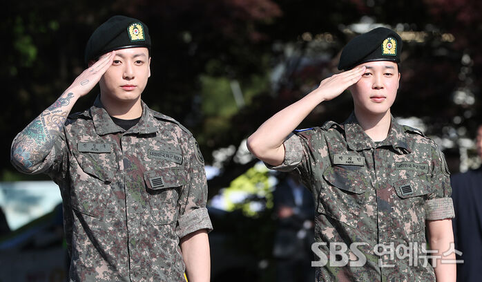 [SBS연예뉴스ㅣ강경윤기자]방탄소년단(BTS)지민과정국이1년6개월의군생활을마치고팬덤아미들의품으로돌아왔다.11일오전경기도연천군연천읍의한운동장에서진행된전역식에등장한지민과정국은다소통통해진볼살과더건장해진체격으로씩씩하게인사했다.둘은2023년12월육군현역으로동반입대해육군5사단포병여단에서복무했다.팬들의환호를받으며앞에선두사람은거수경례를한뒤"이자리까지와주셔서감사하다.카메라가오랜만이라서민망하다.무슨말을해야할지잘모르겠다."며쑥스러운모습을감추지못했다.지민역시전역소감에대해서"휴가나온것같은기분이다.저희의전역까지많은분들이기다려주셔서감사하다.앞으로우리가그려나가던그림을앞으로그려나가고싶고,더좋은모습준비해보여드리겠다"고향후계획을밝혔다.두사람모두군생활을통해서군인에대한고마움을갖게됐다고말했다.먼저정국은"함께고생한분들께감사하다."고인사를전했다.지민역시"함께고생하고지내면서정이많이들었다."면서"길에서군인분들을보신다면가볍게따뜻한말이라도해주시면감사할것같다."고따뜻한마음을전했다.맏형진을시작으로제이홉이전역해활동을하고있다.지난10일RM과뷔가전역했고대체복무중인슈가가오는21일소집해제하면방탄소년단다섯멤버병역의의무를마치게된다.사진(연천)=백승철기자[email protected]©CopyrightⓒSBS.Allrightsreserved.무단전재,재배포및AI학습이용금지