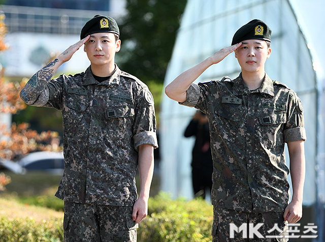 방탄소년단지민과정국이사회로돌아왔다.11일오전복무하던부대에서퇴소한지민과정국은경기연천군연천읍소재공설운동장에서전역식을진행했다.지민과정국은지난2023년12월육군현역으로입대해연천군제5보병사단포병여단에서각각포수와조리병(취사병)으로복무했다.현장에는군인의신분에서방탄소년단으로돌아오게될지민과정국을축하하는현수막은물론이고,전세계에서찾아온팬들로인산인해를이뤘다.11일오전복무하던부대에서퇴소한지민과정국은경기연천군연천읍소재공설운동장에서전역식을진행했다./사진=천정환기자차에서내린두사람은전역을축하하는꽃다발을들고수줍은듯환한미소를지었다.카메라앞에서늠름한모습으로“단결”을외치다가도,카메라가쑥스러운듯연신미소를지으며전역의기쁨을드러냈다.“6월11일5사단부대에서전역을명받아신고합니다”고말한지민과정국은“카메라앞이오랜만이어서조금민망하다.무슨말을해야할지모르겠다”고수줍어하기도.이내지민은“기분이휴가나온거같다.멀리서저희보러와주셔서감사드린다.아미여러분들께먼저말씀을드리자면코로나부터군대까지꽤긴시간이었는데계속기다려주셔서감사하다.오늘전역한만큼계속그려나가던그림을계속그려나가면되지않을까싶다.계속좋은모습그려나가겠다”고전역소감을전했다.정국은“저희보다앞서있었던선임들과아직남아있는후임들,우리보다조금일찍전역한동기,누구보다고생많이하고있는간부님들정말저희와같이생활하시느라고고생많으셨고잘챙겨주셔서감사했다”고함께고생했던전우들을향한감사인사와함께전역의기쁨을드러냈다.지민은“군대가처음이었는데쉽지는않은곳이었다.군대라는곳이만만하게보고들어온적도없지만,같이고생하고밥먹고밖에서잠도자고하면서정도굉장히많이들었다”고말했고,정국은“많은일들이이었는데차차정리해서라이브로풀어드리겠다”고말했다.마지막으로지민은“감사한추억들가슴에담고오랫동안간직하도록하겠다”며“마지막으로한말씀드리자면국민여러분들께감히말씀드리면,군대를와보니쉽지않은곳이었다.옆에서고생하시는분들도많았다.괜찮으시면길지나가다군인들보게되면따뜻한말해주시면너무영광일거같다”고밝혔다.한편방탄소년단은지난해맏형진을시작으로제이홉,어제(10일)전역한RM,뷔에이어지민과정국까지전역하면서6인이군복무를마쳤으며,슈가는오는6월21일소집해제를앞두고있다.이에따라완전체활동에대한기대감도높아지고있다.[금빛나MK스포츠기자][ⓒMK스포츠,무단전재및재배포금지]Copyright©MK스포츠.무단전재및재배포금지.
