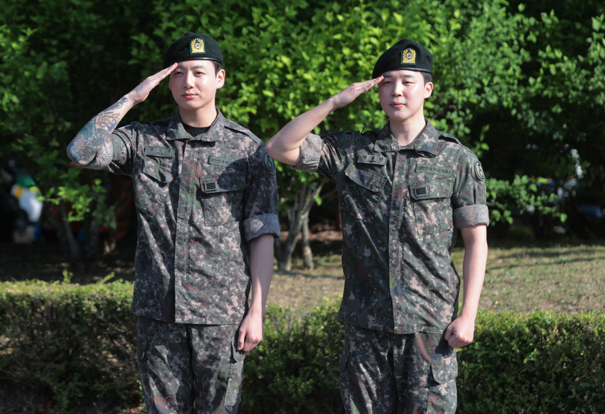 사진=연합뉴스[스포츠조선닷컴이게은기자]그룹방탄소년단지민,정국이전역하면서드디어완전체활동이코앞으로다가왔다.오늘(11일)지민과정국은경기도연천군연천공설운동장에서전역인사를했다.두멤버는먼저취재진,팬들에게거수경례로칼각인사를하며늠름한모습을보였다.정국은"저희를보러와주셔서감사드린다.오늘6월11일제5사단전역을명받았습니다.이에신고합니다"이라고전한후"카메라앞이오랜만이고화장도안해서민망하다"라며수줍은미소를지었다.사진=연합뉴스지민은"멀리서보러와주셔서감사드린다.아미여러분들,코로나19때부터군복무까지꽤긴시간이었는데기다려주셔서감사드린다.전역을했기에앞으로도저희가그려나가던그림을그려나가겠다"라는각오를전했다.이어"군대를와보니쉽지않은곳이었던것같다.지나가다가군인분들을보게되시면가볍게라도따뜻한말을해주시면감사할것같다"라고덧붙였다.전날인10일에는RM과뷔가동반전역했으며,사회복무요원으로대체복무중인슈가는오는21일소집해제된다.슈가만돌아오면방탄소년단완전체활동이코앞으로다가온셈.왕의귀환에가요계관심이쏠렸다[email protected]©스포츠조선.무단전재및재배포금지.