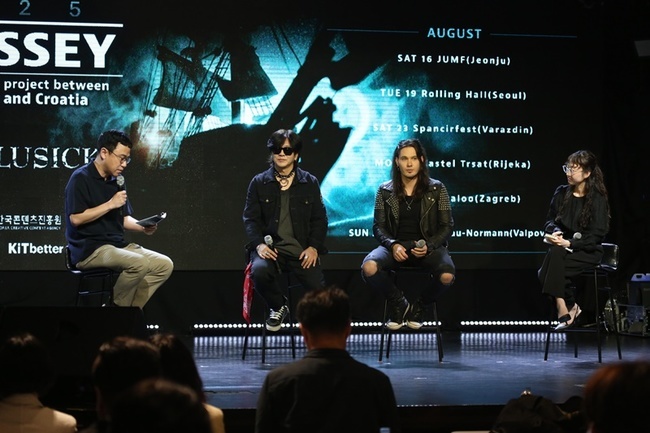 키트베러제공키트베러제공[뉴스엔이민지기자]한국대표밴드YB와크로아티아대표밴드젤루식(Jelusick)이만났다.6월11일키트베러에따르면지난9일홍대롤링홀에서전략적문화교류프로젝트‘ODYSSEY’출범기자간담회가진행됐다.이번기자간담회에는YB프론트맨윤도현과젤루식프론트맨디노젤루식(DinoJelusick)이참석해프로젝트에대한소개와더불어추후일정에대해이야기를나눴다.특히한국에공식적으로는처음소개되는젤루식의앨범‘Followtheblindman’을키트앨범형태로제작해제공하고깜짝아카펠라를선보이는등단순한간담회를넘어음악을교류하는시간으로꾸며졌다.이날진행을맡은배순탁평론가는“서로다른문화에서출발해같은방향을바라보는항해의시작”이라고이번프로젝트를평가했다.향후한국과크로아티아를오가며6회의공연을함께진행할YB와젤루식의활동에많은기대가쏟아졌다.한편올해EP‘Odyssey’를발매,메탈장르로의파격적인변신으로큰화제를불러일으킨대한민국대표밴드YB와함께이번프로젝트를진행하는크로아티아밴드젤루식은5살때이미음악신동으로주목받으며유로비전송콘테스트우승등국제적인음악대회에서수상한경력을가진디노젤루식을중심으로결성됐다.젤루식은강렬한보컬과공격적이면서도사회비판적인사운드로평단의찬사를받았으며이번프로젝트를바탕으로한국을비롯한글로벌활동을이어갈예정이다.뉴스엔이민지oing@기사제보및보도자료[email protected]ⓒ뉴스엔.무단전재&재배포금지Copyright©뉴스엔.무단전재및재배포금지.