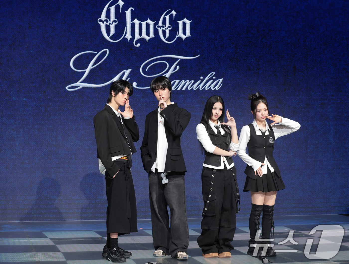24일초코라파밀리아쇼케이스그룹초코(ChoCo)예찬(왼쪽부터)과태조,안판,윤지가24일오후서울마포구쇼킹케이팝센터에서열린초코엔터패밀리앨범‘ChoCoLaFamilia’발매기념쇼케이스에서포즈를취하고있다.2026.2.24ⓒ뉴스1권현진기자(서울=뉴스1)안태현기자=초코2윤지가'초코라파밀리아'이후의활동방향성에대해얘기했다.24일오후서울마포구월드컵북로에위치한쇼킹케이팝센터에서는'초코라파밀리아'(ChoCoLaFamilia)의쇼케이스가열렸다.이자리에는초코라파밀리아의멤버예찬,태조,안판,윤지가참석해무대를펼치고신보에대한이야기를나누는시간을가졌다.이날윤지는초코라파밀리아활동이후어떻게초코1과초코2가활동을이어갈것인가에대해"이번활동은프로젝트성이맞다"라며"패밀리앨범이끝나게되면초코1과초코2는따로활동하고유닛으로활동할것같다"라고말했다.이어"프로젝트이지만데뷔를할수있다는좋고행복한일이다"라고소감을전헀다.한편'초코라파밀리아'는조Pd의초코엔터테인먼트소속초코1,초코2가함께하는첫패밀리프로젝트앨범이다.힙합을기반으로하되형식적인장르문법보다태도에,화려한포장보다자기인식에집중했다.타이틀곡'김미'(GIMME)는장난스러운에너지와탄력있는리듬이인상적인곡이다.경쾌하게튀어오르는비트위에역동적인보컬이어우러지며단번에각인되는후렴이곡의중심을단단히잡는다.이날오후6시각종온라인음원사이트를통해발매된다[email protected]©뉴스1.Allrightsreserved.무단전재및재배포,AI학습이용금지.