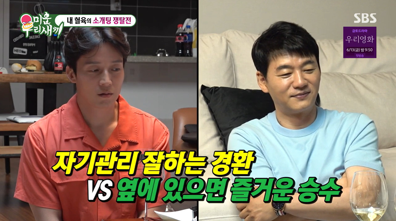 SBS'미운우리새끼'8일방송SBS'미운우리새끼'(서울=뉴스1)김보기자=배우김승수와코미디언허경환이결혼문제로가족들의걱정을샀다.8일오후방송된SBS예능프로그램'미운우리새끼'에서는김준호남매와김승수남매가허경환의집에방문하는모습이공개됐다.이날허경환의집에는허경환의2살차여동생허현경,김준호와8살차여동생김미진,김승수와2살차누나김소영이방문했다.이들은한강뷰에깔끔한인테리어로꾸며진허경환의집을구경했다.침실과고급술이진열된진열장,운동실을차례로살펴보던이들은거실에자리잡고배달음식을시켜먹기로했다.그러면서와인과잔등서로챙겨온선물을나누며식사를시작했다.먼저김미진은아들하나,딸하나가있다고밝혔고허현경은딸둘이있다고전하며미혼인김승수와허경환의결혼이야기로자연스레화제가전환됐다.김소영은"나는이상민보고위안을얻었다,승수도할수있겠구나"라고말했다.그러자김준호는"지금'미우새'에서결혼이유행이다,김종민,이상민갔고나도간다"라고말했다.그러면서김승수,허경환을향해"두분도시작이라도하셔야한다"고말했다.그러자허현경은"준호오빠이렇게당당한모습처음봐"라고당황스러워했다.김준호는"여자만나는레슨한번해드려?"라고말하며의기양양한모습을보였다.김승수는"이지경까지됐구나"라며탄식했다.김준호는김소영과허현경을향해"만약남매가아니라면내오빠,동생과결혼하냐,안하냐"고물었다.김소영은안한다고말하며"일단엄마한테너무효도하고얘가너무꼼꼼하다,잔소리장난아닐것같다"고이유를밝혔다.허현경은"유년시절을생각하면안하는데지금생각하면괜찮을것같다,어렸을때는거의'폭싹속았수다'의학씨아저씨같았는데결혼못하고나이를먹으면서양관식이됐다"고말했다.허현경은허경환에대해"요즘가족한테잘해주려고해서짠하다"고말했다.그러면서"아침에도혼자일찍일어나서가족단톡에'굿모닝'안보냈으면좋겠다,우리는다들바쁘다"고덧붙여웃음을줬다.김소영은"어머니집에가면안주를김승수가만든다,혼자음식하고세팅하는거보면한편으론대단하다싶으면서'저걸옆에서해주는사람이있으면좋을텐데'라는생각에짠하다"고말했다.김소영과허현경은"잘해주면잘해줄수록짠하다,진짜우리가족밖에없구나싶어서"라고말해웃음을자아냈다.김미진은두사람을위해소개팅할사람을구해주기로했다.이에허현경은허경환에대해"우리오빠는일단잘생겼다,돈벌시간이많이남아있다"고말했다.김소영은김승수에대해"일단키,자상함,돈많다,자가가두개고하나는양도할수있다"고밝혔다.곧이어김미진은친구에게전화를걸어두사람중누가더낫냐고물었다.김미진의친구는"허경환은자기관리를잘하는것같고김승수는옆에있으면재밌을것같다"고말했다.그러면서두사람과잠깐통화를해본뒤둘중누가낫냐는질문에는허경환의손을들어주며김승수와김소영을좌절케했다[email protected]©뉴스1.Allrightsreserved.무단전재및재배포,AI학습이용금지.