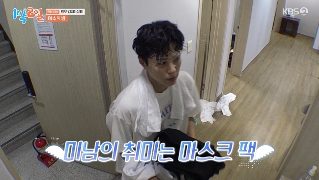 KBS2TV예능프로그램‘1박2일시즌4’방송캡처KBS2TV예능프로그램‘1박2일시즌4’방송캡처KBS2TV예능프로그램‘1박2일시즌4’방송캡처[뉴스엔배효주기자]박보검이'1박2일'에서복불복미션까지진심으로임하며훈훈함을안겼다.6월8일오후방송된KBS2TV예능프로그램'1박2일시즌4'는게스트박보검,이상이가함께한마지막이야기로꾸며졌다.이날아침식사미션을앞두고,조세호는박보검을향해"잘잤어?"라물었다.이어"어제새벽에눈이떠졌다.새벽아침햇살이들어오고보검이가옆에서자는데,자는모습이너무예쁘더라"고말했다.그러면서"침대광고같았다"고말해박보검을웃게만들었다.또,아침식사인여수로컬국밥을걸고'1박2일'멤버들은소금물복불복미션을진행했다.최후의2인으로는각팀의주자인김종민과박보검이남은가운데,두사람모두아무렇지않게컵에담긴물을원샷했다.그러나소금물의주인은박보검이었다.이상이는박보검이먹은소금물을맛보더니참지못하고뱉었고,조세호는박보검을향해"괜찮냐"고물었다.박보검은"괜찮다"고웃으며말했다.한편,다음촬영분에서조세호는"촬영끝나고집에가니보검이한테문자가와있더라"고말했다.이에딘딘은"처음엔스팸인줄알았다.문자가너무정직한말투로와있었다"고귀띔했다.또,박보검이취침전팩을하는것을보고,조세호는"나도박보검을따라팩을하기시작했다"고말했다.그러자김종민은"못생겼는데피부만좋다"고돌직구를날려웃음을자아냈다.뉴스엔배효주hyo@기사제보및보도자료[email protected]ⓒ뉴스엔.무단전재&재배포금지Copyright©뉴스엔.무단전재및재배포금지.