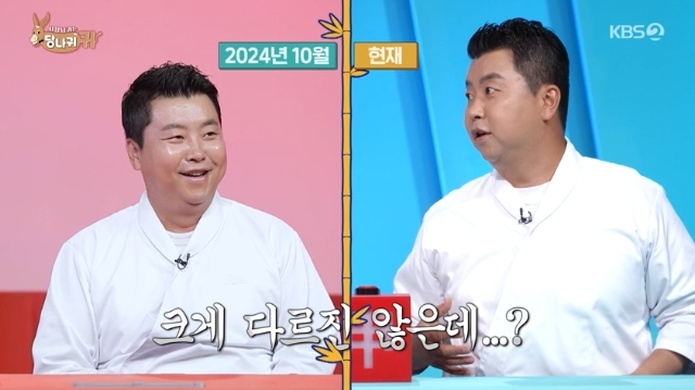 KBS2TV‘사장님귀는당나귀귀’캡처KBS2TV‘사장님귀는당나귀귀’캡처[뉴스엔서유나기자]셰프정호영이마라톤의부작용을전했다.6월8일방송된KBS2TV예능'사장님귀는당나귀귀'(이하'사당귀')309회에서는정호영이살이빠진근황을자랑했다.이날오랜만에'사당귀'스튜디오에찾아온정호영은"제가마라톤을하고있는데인생최초로21㎞하프마라톤을완주했다.마라톤을하다보니살이너무빠지는것같다"고자랑했다.하지만크게다르지않은비주얼의정호영에전현무는"빠지긴빠졌는데너무빠지진않았다"고일침했다.이에"그래도한2㎏빠졌는데"라며억울해한정호영은사실"뛰고나면입맛이미친듯이당긴다"며"2㎏빠지는데먹고나서3㎏찐다"고고백해웃음을자아냈다.한편정호영은MBN예능'뛰어야산다'에출연중이다.'뛰어야산다'는다양한분야에서활동중인스타들이저마다간절한사연을안고생애첫마라톤에도전해자신의상처와한계를극복해가는과정을담는프로그램이다.뉴스엔서유나stranger77@기사제보및보도자료[email protected]ⓒ뉴스엔.무단전재&재배포금지Copyright©뉴스엔.무단전재및재배포금지.