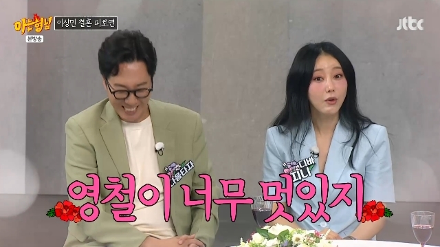 JTBC‘아는형님’캡처JTBC‘아는형님’캡처[뉴스엔서유나기자]방송인김영철이디바멤버이자디자이너김진과번호교환을하며핑크빛분위기를자아냈다.6월7일방송된JTBC예능'아는형님'(이하'아형')485회에서는이상민의결혼피로연이열렸다.이날디바출신김진은이상민이민경훈의결혼식에서부토니에르(남자턱시도에꽂는꽃)를받은덕에결혼을하게됐다고자랑하자"오늘나한테달라"며결혼기운을받고싶다고밝혔다.이런김진은본격피로연이시작되고형님들중미혼인김영철과나란히붙어앉아모두의관심을집중시켰다.피로연주인공인이상민까지"지니가영어도잘하고패션쪽에서사업을하고있어서패션쪽도아마잘챙겨줄수있을것"이라며두사람을적극적으로밀어줬다.이후김진은강호동이김영철을야단치자"왜혼내!"라며대신버럭화내줘핑크빛분위기를자아냈다.서장훈은"지금까지강호동이영철이한테뭐라고했을때옆에서편들어주는사람처음이야"라며신기해했고,강호동은직접적으로"영철이어때?"라고질문했다.김진은"너무멋있지"라고답변한데이어,잘생긴남자좋아하지않냐는말에"잘생겼잖아"라고말해김영철을설레게만들었다.김영철은최근결혼한민경훈이"나도여기서찾아서결혼한거잖나.진지하게생각하라"고조언하자들뜬표정을감추지못했다.그뒤피로연2부를시작하면서형님들은김영철이김진의번호를받았다는제보를했다.김영철은피로연끝나고하지그랬냐는탁빅에"피로연끝나기전에기회가왔을때(물어봤다).'지니전화번호가어떻게돼?'했다"면서번호교환을인정했고,이상민은새신랑의기운이담긴부토니에르를김영철에게던져주는것으로응원의마음을드러냈다.민경훈의기운이이상민에이어김영철에게까지닿을수있을지기대감을자아낸다.한편1978년생만46세김진은1997년그룹디바의멤버로데뷔했다.뉴욕주립대학교패션전문학교패션디자인과학사졸업후현재는패션디자이너로활동중이다.김영철은1974년생으로만50세다.뉴스엔서유나stranger77@기사제보및보도자료[email protected]ⓒ뉴스엔.무단전재&재배포금지Copyright©뉴스엔.무단전재및재배포금지.