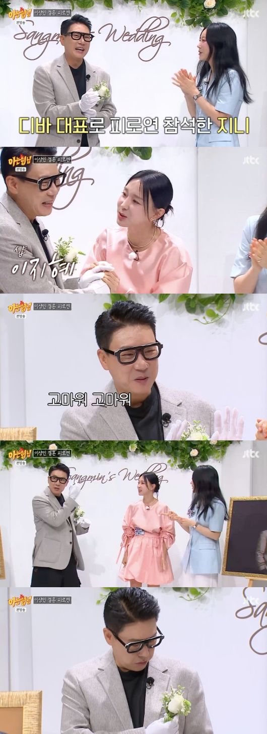 [OSEN=임혜영기자]이상민이지난결혼은이미잊은듯한모습을보였다.7일방송된JTBC예능‘아는형님’(이하아형)은이상민의결혼을기념한특별한피로연이진행,룰라의김지현,채리나,디바김진,샵출신이지혜등이상민의오랜동료들이총출동해축하의뜻을전했다.이상민이지키고있는피로연장에는하객들이찾아왔다.룰라의김지현,채리나,이지혜,디바의김진,‘아형’멤버들등이차례로등장해이상민에게뜨거운축하를보냈다.디바대표로참여한김진은“지난번에못가서”라며이상민의첫번째결혼을언급,웃음을자아냈다.이지혜도“역시사랑을해야하나봐.리즈시절모습이다”라며살이빠진이상민의비주얼을치켜세웠다.김진은“왜이렇게어색해하냐”라고물었고,이상민은“이런걸안해봤으니까”라고설명했다.이에이지혜는“뭘안해봐”라며이상민의지난결혼을언급해웃음을자아냈다./[email protected][사진]JTBC예능‘아는형님’Copyright©OSEN.무단전재및재배포금지.