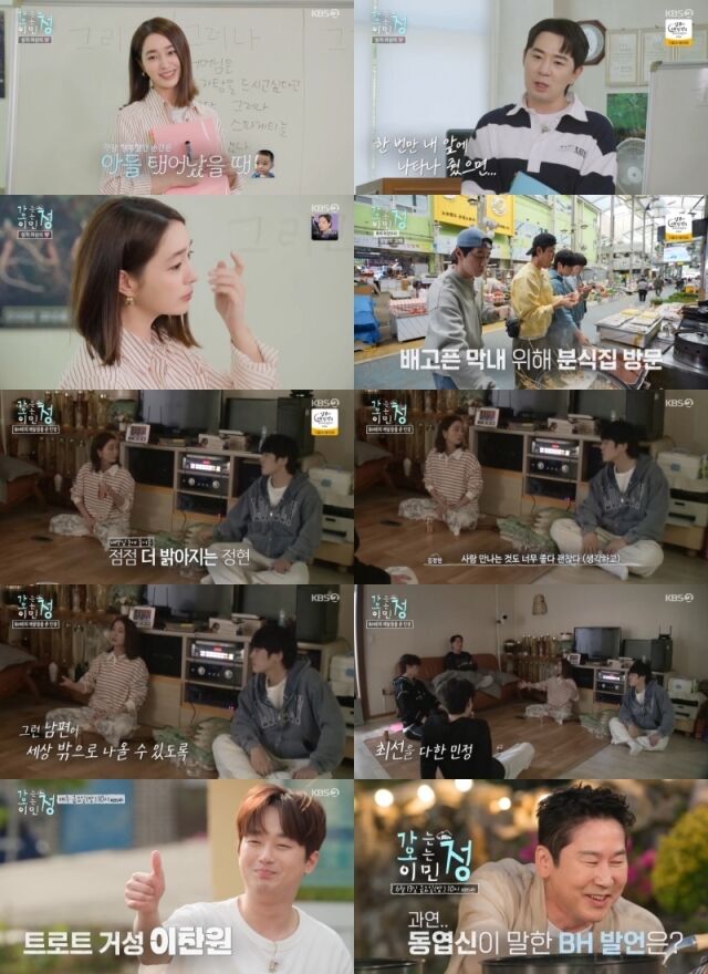 '가오정'/KBS2TV[마이데일리=김하영기자]배우이민정이남편이병현과의사적인대화를공개했다.지난6일방송된KBS2TV'가는정오는정이민정'(이하'가오정')에서는정남매(이민정,붐,안재현,김정현,김재원)와게스트이준영의강원도삼척산촌마을2일차가공개됐다.이날이민정은무엇보다남편이병헌을달라지게하고동생김정현의변화를알아챈이민정의진솔함이뭉클함을안겼다.이민정과붐은산촌마을어르신들을위한한글학교로향했다.이민정이일일한글공부선생님으로나섰다.이민정은"첫째아들이태어났을때가장행복했다","나는밥을잘한다.그래서식구들이좋아한다"등자신의이야기를담은예문으로어르신들한글공부를도왔다.이때한어르신이남편의1주기가다가온다고말했다.하늘로떠난남편이보고싶은어르신의마음에깊이공감한이민정은눈물을흘렸다.붐역시"저희아버지가사고로돌아가셨다"라며"아버지를만나면하고싶은말이'보고싶었다'딱하나다"라고털어놨다.어르신의마음에위로를전하려는이민정과붐의진심이보는사람의마음까지먹먹하게만들었다.같은시각꽃미남4인방(안재현,김정현,김재원,이준영)은마을잔치에필요한식재료를구하기위해전통시장에서장을봐왔다."금명이한테잘하지그랬어"라며재미있게이준영을다그치는시민과의만남,우연히마주한아이유입간판을향한이준영의미련뚝뚝사과,꽃미남4인방의폭풍먹방,갑작스럽게삼척슈퍼스타에등극한안재현등유쾌한에피소드가이어졌다.이어본격적인마을잔치준비가시작됐다.이날정남매와이준영은평소어르신들이쉽게접할수없는양식코스요리를선택했다.특히김정현이단호박수프를전담했는데,기대이상의요리실력을자랑해눈길을끌었다.정남매와이준영의진심,노력을알아주신것인지어르신들의반응도매우좋았다.오전한글학교에서만난한어르신은서툰글씨로이민정에게감사의편지를전하기도.그런가하면이날정남매의진솔한대화도공개됐다.늦은밤잠자리에들기전한자리에모인정남매와이준영.이민정은김정현에게"처음에는'열심히해야지'하는표정이었는데나중에는즐기면서일하는게편해보이고보기좋았다.건강해지는느낌이있다"라고말했다.이에김정현은"예전에저는무조건혼자있는게좋은사람이었다.일(배우)시작하면서그렇게됐다.그런데'가오정'을하면서사람만나는것이좋아졌다.좋은사람들과같이있으니좋은에너지가나는것같다"라고털어놨다.김정현에게긍정적인변화가있음을이민정이알아챈것.이민정은"배우는혼자있으면살아남을수없다.남편(이병헌)도갇혀있던적이있었는데'배우는사람을연기하는건데어떻게사람을안보고연기를해,행복한시간보내면서하는거야'라고말해줬다.어느순간남편이많이달라졌다"라고말했다.이어"배우는갇히면안된다.내삶이즐거워야지"라며김정현에게애정어린조언을덧붙였다.진심을다한이민정덕분에뭉클한감동이가득한방송이었다.그렇다고이민정이감동만준것은아니다.저녁식사후설거지담당을정하기위해훌라후프대결을할때는승부욕을불태우며호탕하게겉옷을패대기치는등빵빵터지는예능감을발산했다.한편'가는정오는정이민정'은매주금요일오후10시방송된다.Copyright©마이데일리.무단전재및재배포금지.