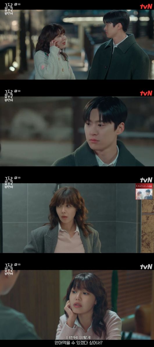 티브이데일리포토[티브이데일리김진석기자]'금주를부탁해'최수영이다시술을마신가운데,의미심장한꿈을꿨다.3일밤방송된tvN월화드라마'금주를부탁해'(극본명수현·연출장유정)8회에서는연애를시작한한금주(최수영)와서의준(공명)의일상이펼쳐졌다.이날밤에만난한금주는"내가보고싶대서온거냐"라고물었고,서의준은"내가보고싶어서"라고대답했다.서의준은걸으면서한금주의손을잡았고,한금주는서의준에애교를부렸고,시큰둥한듯보였던서의준은"심장이멎는줄알았다"라며너스레를떨었다.김수석(전진오)은한금주에차량수리를부탁하며"황책임공석에한선임승진시키자고밀고있다.이번에는승진틀림없다"라고전했고,한금주는이소식에기뻐했다.그러나김수석은한금주의승진에회의적인입장이었고,"알코올중독치료중"이라며윗선에보고했다.이를알리없는한금주는승진가능성에기대감을드러냈다.서의준은지방을향한의료봉사에도참석하지않겠다밝히며한금주를찾아갔다.두사람은반가움에서로를포옹하며대화를나눴다.한금주는"근데나때문에서울온거냐"라고물었고,서의준은"서울에이사와도병원잘다니고면담거르지마라"라고조언했다.서의준은과거아버지가병원에서난동을피우며생긴트라우마가있었다.그는한금주에"오늘가지말고나랑같이있자"며제안했고,두사람은서의준에집에방문했다.한금주는"서울안갈래"라고선언했고,서의준은"갑자기?"라고되물었다.한금주는"방금정했다.여기있어야너한테얻어먹을수있을것같다"라며"너자주못보는게더힘들것같다"라고덧붙였다.한금주의플러팅에흐뭇한미소를짓던서의준은잠시뒤그가피로를이기지못하고잠들자머리를받쳐주며입을맞췄다.그렇게잠들었던한금주는다음날혼자일어나며허무함에사로잡혔다.한금주는다시서의준을유혹했고,그순간서의준의집을방문한누군가가산낙지를떨어트리고도망가두사람은모두놀랐다.한금주는기범모(김현숙)이목격했다고생각했고,그를찾아갔으나그가아니라는사실에다른목격자를찾았다.목격자는그의언니한현주(조윤희)였고,한현주는"욕정에눈이멀어서선욱이(강형석)랑의준이사이에서바람을피우냐"라며그의멱살을잡았고,한금주는사람들이모두모인자리에서"나는의준이만사귀고,의준이만사랑한다고"라고밝혔고,두사람의비밀연애는5일만에종료됐다.이후데이트를하던한금주는서의준에게"술을마시지않았는데몽롱한기분"이라말했고,서의준은"난너에게취했다"라고대답한뒤키스를나눴다.이날두사람은사랑을나누며서로의마음을재차확인했다.한금주는승진을기대하고출근했으나동료들의걱정섞인시선에"안될수도있지"라며스스로를위로했다.그러나한금주는책임으로승진했고,동료들은축포까지터트리며함께기뻐했다.그러나한금주는김수석과의트러블이법적분쟁으로번졌다는사실을알게됐다.다음날까지고발이취소되지않으면승진이취소되는상황이었다.김수석은퇴사를선언한상황이었고,최미연(염승이)과함께그를찾아가따졌다.김수석은"술이라도사면서제대로부탁을해라"라며"절실하면보여줘봐.목숨걸고마셔봐라"라고자극했고,한금주는"내가이기면군소리없이취소하는것"이라며그의내기를받아들였다.결국한금주는김수석을술로쓰러트렸고,그는"인정"이라는말을남긴채자리를떠났다.모래사장위에서잠이든한금주는꿈에서서의준을만났고,그가"난너는잃고싶지않아"라고하는말을들었다.[티브이데일리김진석기자[email protected]/사진=tvN'금주를부탁해']금주를부탁해[Copyrightⓒ*세계속에新한류를*연예전문온라인미디어티브이데일리(www.tvdaily.co.kr)/무단전재및재배포금지]Copyright©티브이데일리.무단전재및재배포금지.