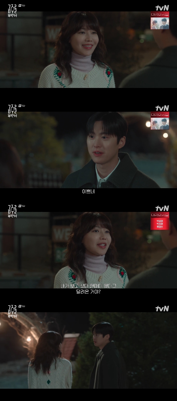 [OSEN=임혜영기자]최수영이공명과의하룻밤을앞두고속옷을체크했다.3일방송된tvN월화드라마‘금주를부탁해’에서는하룻밤을보내게된한금주(최수영)와서의준(공명)의모습이그려졌다.서의준은복잡한마음을안고한금주의직장을찾아앞에서기다렸다.서의준은“야근하는여친데리러왔다.보고싶어죽는줄”이라고말하며애정을쏟아냈다.한금주는“진짜나때문에서울왔냐”라고말했고서의준은그렇다며“병원잘다니고.면담거르지말고”라고한금주를걱정하는모습을보였다.서의준은한금주의집에도착했다.한금주가차에서내리며인사를하자서의준은“가지마.가지말라고.오늘같이있자나랑”이라고직진고백을했다.한금주는“진도가왜이렇게빨라”라며속옷을체크했고“다행히짝짝이는아니네”라고안심했다./[email protected][사진]tvN월화드라마‘금주를부탁해’Copyright©OSEN.무단전재및재배포금지.