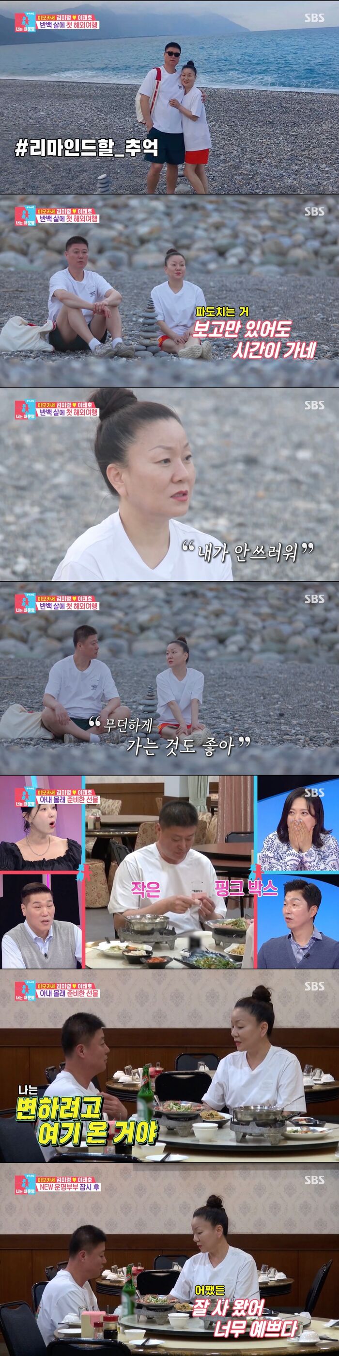 [SBS연예뉴스|김효정에디터]이태호가김미령에게깜짝이벤트를했다.2일방송된SBS'동상이몽시즌2-너는내운명'(이하'동상이몽2')에서는이모카세부부의첫해외여행이그려졌다.이날방송에서이모카세부부는택시투어를하며시간을보냈다.국수맛집부터여러명소를돌고해변에간두사람.두사람은신혼여행때촬영했던사진을그대로재연해눈길을끌었다.끝없이티격태격해도그래도항상꼭붙어있는두사람은소원을빌며돌탑도쌓았다.이에이모부는"일하는사람들다치지않게1년마무리하는게제일좋은거고그안에는김미령도있고이준성도있고"라며자신의소원을말했다.돈도많이벌었으면좋겠다는김미령에이태호는"돈많이버는것보다우리가문제야"라고했다.그러자김미령은"왜우리가문제야?오빠가문제지.내소원이뭔지알아?난이태호가좀더빠릿빠릿하고화장실좀자주안갔으면좋겠어"라고말해폭소를자아냈다.그럼에도두사람은돌탑앞에서하트를만들며기념촬영을해눈길을끌었다.나란히앉아바다를바라보던두사람.이때김미령은"파도치는것만보고있어도시간이가네.내가안쓰러워"라고말했다.이어그는"이런한가로움이어색해.이멋있는바다앞에앉아있다는게.뭔가해야할거같은데놀고있는거같은기분이들어.그리고그런생각을하는내가좀안쓰러워"라며생각에잠겼다.이에이태호는"놀아본사람이논다고막어본사람이먹을줄안다고우리는그러지못해서그래"라며김미령을위로했다.그러자김미령은"그런마음이든다는게서러운거같아"라고했다.또한김미령은"이여유로움을가질거야.급해지지않고"라며쉼을알려준여행에고마워했다.이날이태호는김미령을위한깜짝이벤트를했다.앞서야시장에갔던두사람,당시이태호는화장실에간다며자리를비웠고이때김미령에게줄선물을샀던것.대만에서유명한옥반지를구매한이태호는무릎을굽히고김미령에게반지를끼워주었다.프러포즈도안받아봤다는김미령에이태호는"난변하려고온거야.21년동안해준게없는게너무미안하고,큰걸로해주지못해미안해"라며진심을전했다.이에김미령은"그래감사합니다.고마워,잘사왔어.너무예쁘다"라며앞서명품선글라스를받았을때와다른반응을보여웃음을자아냈다.한편방송말미에는배우송재희,지소연부부가새로운운명커플로합류하는모습이예고되어다음방송에대한궁금증을자아냈다.Copyright©CopyrightⓒSBS.Allrightsreserved.무단전재,재배포및AI학습이용금지