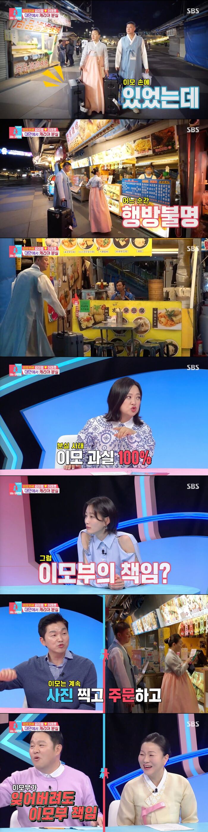 [SBS연예뉴스|김효정에디터]사라진이모의캐리어,누가책임?2일방송된SBS'동상이몽시즌2-너는내운명'(이하'동상이몽2')에서는이모카세부부의첫해외여행이그려졌다.이날방송에서이모카세는갑자기사라진캐리어에당황했다.이모부를향해화를내려던그때다행히도캐리어는바로옆가게에서발견되어눈길을끌었다.이를보던패널들은가방분실에관한책임론을이야기했다.이에박민철변호사는"법적으로봐도꼭이모의책임은아니다.처음에는이모가쥐고있었으니이모책임이라고할수있지만이모는사진도찍어주고주문도하고계속무언가를했다.그러면짐보관은이모부가책임을져야할것같다"라고설명했다.이를들은김구라는"변호사님이뭘잘몰라서그러는데여기는이모가잊어버려도이모부책임,이모부가잊어버려도이모부책임이다"라고말했다.이에이현이도"편들어주지않으셔도된다.이미절대권력자다"라고거들어폭소를자아냈다.Copyright©CopyrightⓒSBS.Allrightsreserved.무단전재,재배포및AI학습이용금지