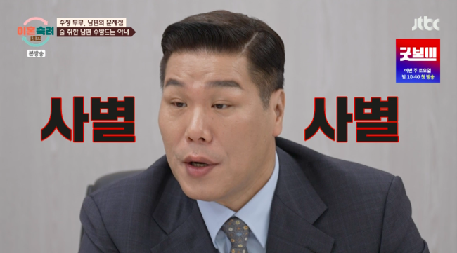 [OSEN=박하영기자]‘이혼숙려캠프’서장훈이하루종일술만먹는남편에살벌한경고를날렸다.29일방송된JTBC‘이혼숙려캠프’에서는12기부부의가사조사가진행된가운데주정부부사연이그려졌다.이날남편이‘이혼숙려캠프’를신청했다고밝힌상황속먼저아내측영상이공개됐다.아내가주장한남편의첫번째문제점은일방적인스킨십이었다.아내의거부에도엉덩이집착면모를드러낸남편은제작진과의인터뷰에서“(부부관계)한달에60회원한다”라고밝혀모두를놀라게했다.남편의문제점은또있었다.바로의처증이었다.남편은아내가말없이친구를만나러나가자무려27통을전화하는모습을보였다.이에아내는“친구들모임,동창들모임못가게하고지인경조사못가게하고식당에알바했을때사장님이남자면회식도못가게했다.가면몰래따라와서지켜봤다”라고설명했다.남편은“휴대폰검사부터했다.패턴풀어서위치추적까지하려고했다”라고털어놨다.이처럼의처증이생긴이유는바로전처의외도때문이라고.남편은“과거전처가바람피워서제가그걸본적이있다.모텔에가는걸아는동생이봤다고해서문을부수고들어갔다.직접목격했다.그순간눈이완전히돌아버렸다.그게트라우마로남았다.그때부터사람을잘안믿는다”라고밝혔다.박하선은“이분은그분이아닌데”라고안타까워했고,서장훈은“본인이치료해야할문제지.그게왜엉뚱하게화살이날아가냐.아내를괴롭히면안되는거아니냐”라고지적했다.무엇보다가장심각한남편의문제점은술이었다.남편은새벽4시부터막걸리3병을마시고취해잠들더니다시일어나소주와맥주를먹기시작했다.평소그는막걸리,소주,맥주를매일마신다고해충격을더했다.그러자서장훈은“또이야기하는데이혼이아니라사별이다.매일먹는사람은정말짧고굵게살겠다고얘기하는거랑똑같다.지금은그나마크게안나왔다.근데곧여러가지문제가생길거다.무섭게생각하셔야한다”라고경고했다.심지어남편은술을마시고취해자고있는아내를꺠우거나이것저것시키고힘들게했다.그럼에도아내는남편을부축하고챙겨주는모습을보였다.이에대해박하선은“예전에남편분이취해서가다가바지에실수를하신적이있다고하더라.그래서새벽에나와서부축인다고하더라”라고했고,남편은“제가술취해서가다가발이꼬여서방광이풀려버린거다”라고수긍했다.현재아내혼자돈을벌고있는상황에도불구하고남편은하루종일집에서술만먹고있었다.아내는인터뷰를통해생활비지출의80%는남편의술값으로나가고있다며“8년동안살면서1년반이제일오래일을했다.작년에도대전에일하러올라간다고갔다.그때부터계속보름을모텔잡아놓고술값으로100~200만원썼다”라고밝혔다.하지만남편은“아내가날이렇게만들었다”라며황당한주장을했다.그는“결혼할때부터이렇게했다.그때부터다해줘서제가이렇게됐다.아내한테가스라이팅당한거다”라며모든원인을아내탓으로돌려분노를샀다./mint1023/@osen.co.kr[사진]‘이혼숙려캠프’방송화면캡처Copyright©OSEN.무단전재및재배포금지.