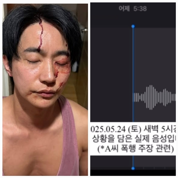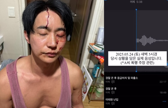 뮤지컬배우전호준이전연인A씨의폭행주장에대해정면반박하고나섰다.전호준은25일자신의개인채널을통해“2025년5월24일(토)새벽5시경,경찰이현장확인후촬영한증거사진입니다”라는문구와함께얼굴에피를흘리고있는사진을공개했다.사진속전호준은이마에서눈가를따라흘러내린선명한피자국,붉게물든입주변과뺨,그리고상처가선명한상반신으로충격을안겼다.전호준은25일자신의개인채널을통해“2025년5월24일(토)새벽5시경,경찰이현장확인후촬영한증거사진입니다”라는문구와함께얼굴에피를흘리고있는사진을공개했다.사진=SNS또다른게시물에서는“해당시간상황을담은실제음성입니다”라는말과함께녹음파일을공유했다.음성에는A씨로추정되는여성이전호준의집을찾아와다투는장면이담겨있었다.A씨는“비밀번호를가르쳐줬었는데이게불법침입이냐”고따졌고,전호준은“그건예전일이고지금은바꿨다.들어오지마라”고대응하는장면이생생히녹음됐다.특히전호준이“때리지마”라고말하는부분과,이어지는A씨의“살려주세요”라는외침은상황의긴박함을고스란히전달했다.전호준은이와함께“경찰에이미신고했다”고밝혔다.앞서A씨는24일,전호준이자신에게천만원가량을갈취했고,23일에는폭행까지당했다고주장했다.진단서와자필진술서,폭행으로인한상처사진까지공개되며파문이확산된바있다.전호준은2007년뮤지컬‘노트르담드파리’로데뷔했으며,최근까지‘킹키부츠’엔젤역으로무대에올라왔다.이번논란과관련한추가입장은아직전해지지않았다.[김승혜MK스포츠기자][ⓒMK스포츠,무단전재및재배포금지]Copyright©MK스포츠.무단전재및재배포금지.