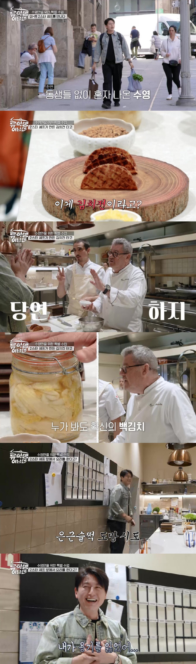 '류학생어남선'토요일오후5시20분방송[이데일리스타in김가영기자]티캐스트E채널‘류학생어남선’에서포르투갈미슐랭2스타셰프의주방에초대된류수영이현지’김치전타코‘의맛에푹빠진다.24일방송되는티캐스트E채널’류학생어남선‘에서류수영은무려7년연속포르투갈미슐랭2스타의자리를지킨스타셰프후이파올라와의만남을가진다.후이파올라는이전부터동치미맛랍스터수프,김치콜리플라워,동치미아이스크림등포르투갈음식과결합한퓨전한식의맛을선보인바있다.더많은요리법을맛보기위해윤경호X기현과갈라진류수영은그의주방에초대를받았다.류수영을환대한후이파올라는“김치의원래레시피를무시하지않고포르투갈의식재료로우리방식대로만들려고노력했다”며그가담근백김치를공개했다.그의김치맛을본류수영은“이정도면명예한국인이다”라며극찬했다.한편,셰프후이파올라는’류학생어남선‘을위해특별히개발한김치전타코를류수영앞에서재현했다.와플기계로바삭하게구운김치전반죽을타코셸모양으로만들었고,속재료로관자,랍스터,새우등신선한해산물을구워큐브모양으로연출했다.심지어새우머리,레몬즙,머스터드를섞어어디에도맛볼수없는특제소스를완성했다.류수영은“양장피소스가업그레이드된맛,부드럽고세련됐다”며“(셰프님실력에)벽을느끼는것같다”며감탄했다.이어그는레몬소금등을킥으로넣어모든재료가조합된’김치전타코‘의맛에“포르투갈을감싼한국이다.맛이뻔하지가않다.먹어본것중에최고였다”며엄지를치켜들었다.이후류수영이한국음식을대접할차례가됐지만,그는“먹고나니까요리못하겠다”며도망을시도해웃음을자아냈다.과연“용기를잃었다”고진실을고백한류수영이미슐랭2스타에게선보일한식요리는무엇일지,궁금증을안긴다.‘류학생어남선’은5월24일토요일오후5시20분E채널에서방송된다.김가영([email protected])Copyright©이데일리.무단전재및재배포금지.