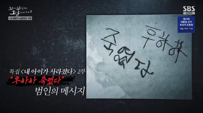 [SBS연예뉴스|강선애기자]우리가잊지말아야할역사속'그날'의이야기를,'장트리오'장현성-장성규-장도연이들려주는SBS'꼬리에꼬리를무는그날이야기'(이하'꼬꼬무').본방송을놓친분들을위해,혹은방송을봤지만다시그내용을곱씹고싶은분들을위해SBS연예뉴스가한방에정리해드립니다.이번에'당신'에게들려주고싶은'그날'의이야기는,지난15일방송된'내아이가사라졌다'특집3부작중두번째''후하하죽였다'범인의메시지'편입니다.이야기친구로는가수김종국,개그맨겸배우임하룡,가수겸배우정은지가출연했습니다.(리뷰는'꼬꼬무'의특성에맞게,반말모드로진행됩니다.)▲시신으로발견된아이때는1975년8월25일새벽6시.부산서구의한어시장근처야.방파제옆엔야외작업장이하나있었는데,그곳에서새벽부터상자들을정리하던장씨의눈에뭔가수상한게들어왔어.장씨는쌓여있는상자들사이를유심히들여다봐.그러다거기서,어린남자아이를발견해.아이의상태는충격적이었어.속옷하나만걸친채손과발이묶여있고,입안은신문지로가득채워진상태로숨이멎어있어.살인사건이었어.50년전의그사건이아직도생생하다는,형사님의이야기를들어볼게."이사건자체가머리에남아있는사건이기때문에.그래서내가현장을기억하고있어요.제가서있는위치에서왼쪽이수산센터공판장이에요.현장날씨가그때더웠어요.바닷가이기때문에바람은좀불었는데더웠어요.앞쪽여기에나무상자가그당시에쭉있었어요.상자들중간지점에그당시에(남자아이의시신이)이상자더미속에서있었어요.지금은완전변형이됐습니다이지역이."-서정우,당시부산동부경찰서형사누군가끈으로아이의목을조른걸로보여.이끈은,아이가입고있던메리야스를찢어만든거야.그외다른흉기나도구는발견되지않았어."족적이라든지혈액이라든지담배꽁초에있는타액이라든지이런걸찾아내야하는데전혀그당시에는그런증거를찾을수가없었고.그당시엔CCTV가없던시절이에요."-서정우,당시부산동부경찰서형사어시장은발칵뒤집혔어.경찰들이몰려들고상인들도죄다나와서현장을지켜봐.그땐이웃집숟가락이몇개인지다알던시절이야.이동네아이라면누군가는알아봤을텐데,아무도아는이가없어.경찰은아이의신원부터파악해.그리고숨진아이가사건현장에서7km떨어진곳에서실종된아이라는걸알수있었어.아이의이름은박도훈(가명).2남2녀중에막내야.장씨가어시장에서이작은아이를발견하기하루전인8월24일저녁.도훈이는오후7시쯤가족들과집에서저녁을먹었어.그렇게식사를한후엄마가잠깐외출하고,오후9시쯤돌아와보니도훈이가안보이는거야.가족중에서아이가나가는걸본사람이아무도없어.부랴부랴가족들은막내를찾아다녔고,그때도훈이를봤다는사람을만났어.당시도훈이아버지가공장을운영했는데,공장직원이도훈이를만났다는거야."일끝내고가는데도훈이가길에서놀고있어서,동전20원주고후딱집에들어가라했습니다."-공장직원돈을받자마자구멍가게로달려가는걸,어두워지기전에얼른집에가라고돌려보냈대.그렇게도훈이가집으로걸어가는모습이마지막이었다는거야.부검결과에따르면,도훈이의사망시각은저녁식사후2시간이내로추정돼.아마도공장직원과인사를나누고돌아서는길에,누군가에의해유괴된걸로보여.가족들은어땠겠어.사랑스러운막내아들이싸늘한시신으로돌아왔다는걸받아들이기힘들었어."강부인은경찰의연락을받고남편과함께현장으로달려갔다.끔찍하게숨져있는차디찬시체가바로도훈군이었다.강부인은외마디소리와함께그자리에서쓰러져실신했다.이마을에서는총명하고명랑하다고귀여움을받고있는도훈군은언니들의책을펴놓고공부도하고,저녁이면온가족이모여도훈군의노래를들으며단란한한때를보내기도했다고한다."-당시신문기사中한가족을무너뜨린범인,꼭잡아야지.▲아동연쇄살인사건형사들은우발적인범행이라보지않았어.아이유괴부터살인,사체유괴까지과정이너무빠르고일사불란하니까.사실,60~70년대는어린이유괴사건이잘발생하던시기야.목적은금전혹은원한.그런데이사건은범인이돈을요구해오지도않았고,가족모두누군가에게원한을살만한일은없었다고해.그럼왜범인은아이를참혹하게살해한걸까."어떤금품의목적이아니고어린아이를잔인하게죽이고자기가어떤희열을느끼는,자기범죄의도구로충족시키는특이한범죄가아니겠느냐.그당시에전국적으로큰사건이었습니다.애들이연속으로죽은사건이기때문에."-서정우,당시부산동부경찰서형사아이들을대상으로한연쇄살인.사실도훈이가처음이아니었어.도훈이기사라지기나흘전에도한여자아이가사라졌어.8월21일새벽용두산공원에서싸늘한주검으로발견된거야.공원관리인이수풀속에서발견한아이시신은,알몸상태에서속옷만입은채로손발이결박돼있었어.도훈이때랑똑같아.소녀의이름은김지은(가명).7살이야.8월21일저녁10시쯤.외할머니네서놀던지은이는할머니로부터용돈을받자집근처핫도그가게로달려갔어.핫도그를사먹고집으로돌아가던지은이는그대로사라졌어.가족들은지은이를찾아헤매다뜬눈으로밤을지새웠고,다음날생각지도못한모습의딸을만나게된거지.도대체누가왜내딸의모습을앗아간걸까.그런데