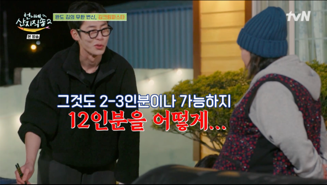 [OSEN=박근희기자]'언니네산지직송’염정아가큰손을인증했다.18일전파를탄tvN‘언니네산지직송’에서는사남매의무르익은케미가그려졌다.염정아는파스타면을삶으면서“많이삶을게아니라서”라고말하며10인분의양을넣었다.이를본이재욱은“허억.우리누나손커”라며깜짝놀랐다.이어사남매는정성껏요리를해서저녁제철밥상을완성했다.메뉴는완도김크림파스타,가루듬뿍통삼겹바비큐,그리고완도전복버터구이였다.이재욱은“진짜맛있다”라며미간을구겼고,임지연역시감탄을하며폭풍먹방을선보였다.박준면역시웃음을참지못하며“너무잘했는데?”라며음식맛을칭찬했다.이재욱은“누나시즈닝이진짜맛있다.누나가해준거”라고말하기도.이재욱은“저좀익숙해진거같아요”라며누나들과함께하는시간에적응했다고말해눈길을끌었다.이재욱은“처음에는정신이하나도없었는데그냥재밌어.즐길수있게됐어”라고덧붙였다.식사를끝낸사남매는역대급조업의여파로아무것도하기싫은상태로멍을때렸다.이어사남매는설거지내기를위해끈끈이게임을했고,꼴찌인박준면이설거지담당이됐다./[email protected][사진]‘언니네산지직송'방송화면캡쳐Copyright©OSEN.무단전재및재배포금지.