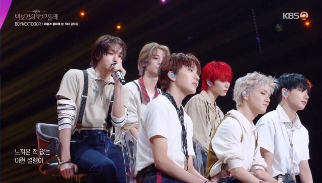 KBS2TV'더시즌즈-박보검의칸타빌레'/KBS2TV'더시즌즈-박보검의칸타빌레'[마이데일리=강다윤기자]그룹보이넥스트도어(BOYNEXTDOOR)가콘서트를방불케하는완벽한라이브무대로금요일밤을뜨겁게달궜다.보이넥스트도어(성호,리우,명재현,태산,이한,운학)는지난17일오후11시20분방송된KBS2TV'더시즌즈-박보검의칸타빌레'에출연해신곡'아이필굿'(IFeelGood)을비롯해다양한장르의곡들을가창,폭넓은음악스펙트럼을증명했다.KBS2TV'더시즌즈-박보검의칸타빌레'/KBS2TV'더시즌즈-박보검의칸타빌레''그사람작사,그사람작곡'을주제로꾸며진이날방송에서여섯멤버는지난1월발표한히트곡'오늘만ILOVEYOU'로포문을열어큰환호성을받았다.이어최근발매한미니4집'노장르'(NoGenre)의타이틀곡'아이필굿'(IFeelGood)을열창해현장을들썩이게만들었다.멤버들의넘치는끼와생동감있는퍼포먼스,풍성한밴드사운드가어우러져보는이들의흥을돋웠다.보이넥스트도어는에너제틱한안무를소화하면서도흔들림없는라이브실력을뽐냈고,객석에서는박수와탄성이쏟아졌다.또한이들은MC박보검과대화를나누다네이버웹툰'소녀의세계'와의협업곡'이렇게좋아해본적이없어요'와미니3집'19.99'수록곡'콜미'(CallMe)의일부분을즉석에서가창해감미로운시간을선사했다.'이렇게좋아해본적이없어요'에서는멤버들의부드러운미성이돋보였고,'콜미'(CallMe)는박보검의피아노반주와함께선보여열띤호응을얻었다.보이넥스트도어는앨범크레디트에꾸준히이름을올리며자신들의감성과누구나공감할소재로곡을만들고있다.멤버들은"데뷔후지금까지나온곡들을직접작업하다보니자연스럽게노래안에저희의개성이녹아들었다"라고설명했다.'오늘만ILOVEYOU'의외국어가사에대해서는"이노래에서가장중요한것은간절함과절박함에서나오는낭만이라고생각했다.다양한언어를사용하고마지막에'사랑해'라는말을하면낭만적일것같아서이런가사를만들었다"라고작업후일담을전했다.특히이들은이번신보에대해"메시지나장르적으로틀에박히지않은,저희만의음악을하겠다는포부를담은앨범이다.멤버들이참여해많은장르를실었다.타이틀곡'아이필굿'(IFeelGood)을들으면자유로움을느낄수있을것"이라고소개하며당찬자신감을드러냈다.Copyright©마이데일리.무단전재및재배포금지.