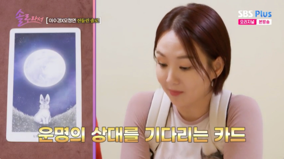 [스타뉴스|김노을기자]/사진=SBSPlus방송화면배우오정연과이수경이운명의상대를기다렸다.13일방송된SBSPlus,E채널예능프로그램'솔로라서'에서는이수경과오정연이타로점을보는모습이그려졌다.이날타로마스터는이수경이뽑은타로카드에대해"카메라를받는운이활개치는3년이될것"이라며"자식운도강한시기다.원래사주에자식이예쁘게한명들어있다"고말했다./사진=SBSPlus방송화면이어"앞으로3년이인생의마지막기회"라며"남자운도좋아진다.올해2명정도들어올수있다.(이수경이)토론을좋아하는성격이지만남자들은공격으로받아들일수도있다"고점괘를설명했다.오정연도타로카드를뽑았다.타로마스터는오정연에대해"과거의상처,실패에대한트라우마가아직도있다.남자에대한불신도크다"고전했다./사진=SBSPlus방송화면또"자식운,남자운도좋은데자신을규정짓는남자를만나며힘들었다고나온다.운명의상대를기다리는모습도보인다.임신을상징하는카드도나왔다.자식운이들어오는타이밍이니까남자를적극적으로잡아야한다"고조언했다.타로마스터는마지막으로이수경과오정연의공통점에대해"두분다내년에배우자가나타나고정착할운으로간다"고말했다.김노을기자[email protected]©스타뉴스&starnewskorea.com,무단전재및재배포금지