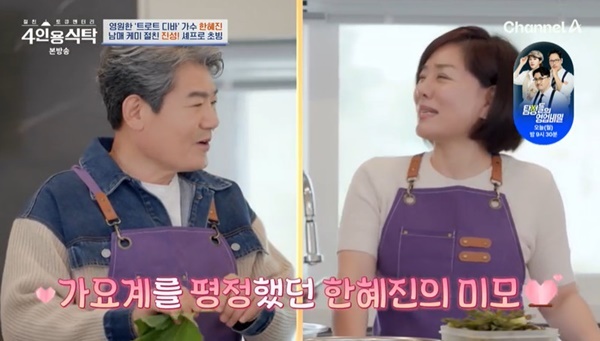 채널A‘절친토큐멘터리4인용식탁’캡처채널A‘절친토큐멘터리4인용식탁’캡처[뉴스엔유경상기자]진성이과거한혜진에게흑심이있었다고말했다.5월12일방송된채널A‘절친토큐멘터리4인용식탁’에서는가수한혜진(59세)이진성(64세)의도움을받아손님맞이준비를했다.요리에서툰한혜진이손님맞이에진성의도움을받았다.한혜진이“바쁜오빠가오셨는데”라며고마워하자진성은“내가얼마나바쁘겠냐.옛날에한혜진은동에번쩍,서에번쩍했다”고응수했다.한혜진이“그때는제가잘나갔죠?”라고너스레를떨자진성은인정하며“가장부러워했다.지금도미모가살아있지만아름다워서사내들의가슴을설레게만들었다”고말했다.한혜진이“이제(미모가)갔다”고농담하자진성은“나도그중에한사람이었다”고고백했다.한혜진이“진짜이야기하지”라며웃자진성은“살짝껄떡거리기라도해볼걸”이라고반응해웃음을자아냈다.한혜진은30년넘은인연이라며“그때는오빠가무서웠다”고진성의인상변화도말했다.진성은“무서울수밖에없었다.무명이길었다”며당시심기가불편했다고했고한혜진은“인상이강했는데지금은알랭드롱같다.너무다른모습”이라며진성의변화를반겼다.또한혜진이“옛날에오빠는내옆에오지도않았다”고말하자진성은“자격지심이있어서그런지인기있는연예인분들에게가까이간다는게힘들었다.야간업소를해도인기가수는로열타임이었다.우리는초저녁이었다”고했다.(사진=채널A‘절친토큐멘터리4인용식탁’캡처)뉴스엔유경상yooks@기사제보및보도자료[email protected]ⓒ뉴스엔.무단전재&재배포금지Copyright©뉴스엔.무단전재및재배포금지.