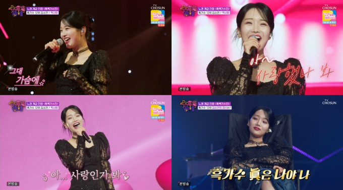 예능‘트롯올스타전:수요일밤에’김소연(출처:TVCHOSUN)초이랩소속가수김소연이간드러진목소리를선보였다.김소연은지난7일방송된TVCHOSUN예능프로그램‘트롯올스타전:수요일밤에’(이하‘수요일밤에’)에출연했다.‘수요일밤에’는역대‘미스&미스터트롯’스타들이총출동해오직무대로만승부하는본격노래대결프로그램이다.이날김소연은최종1인의진(眞)을가리기위한계급대결‘흑백가수전’특집을꾸몄다.‘흑가수’팀이된김소연은능청스럽게“의자가불편하니까평소보다대기시간이긴것같다”라고너스레를떨었다.콧소리에변화가필요하다는의견에는“내매력인데”라며“백가수로올라가겠다”라고각오를다졌다.주현미의‘짝사랑’을선곡한김소연은흑백의상으로섹시하고시크한매력을발산했다.이와함께김소연의비타민같은에너지가시선을모았다.또김소연은특유의콧소리를제대로활용하며탄탄한가창력을증명했다.김소연의무대후정서주는“소연언니가너무잘불러서놀랐다”,배아현은“이곡자체가소연이한테맞춤옷이다”고호평했다.실제로김소연은높은점수를받아진자리에앉게됐다.한편,김소연은‘미스트롯3’에서탁월한보컬실력은물론,밝은미소와비타민같은매력으로주목받아TOP7에올랐다.다양한방송프로그램및콘텐츠를통해활발한활동을펼치며팬들과소통하고있다.예능‘트롯올스타전:수요일밤에’김소연(출처:TVCHOSUN)Copyright©bnt뉴스.무단전재,재배포및AI데이터활용금지
