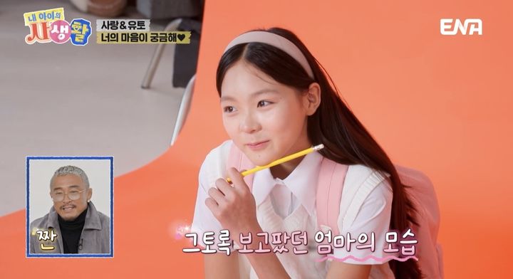 [서울=뉴시스]추사랑.(사진=ENA예능물'내아이의사생활'캡처)[email protected]*재판매및DB금지[서울=뉴시스]신효령기자=이종격투기선수추성훈의딸추사랑이12년단짝친구유토와광고촬영장을찾았다.지난27일방송된ENA예능물'내아이의사생활'에서유토는광고촬영에나선사랑이의매니저로변신했다.올해14살인사랑이는화보촬영에이어단독광고촬영을위해스튜디오를찾았다.광고촬영에나선사랑이는전문모델포스를보여줬다.사랑이의어머니인야노시호를닮은외모로이목을끌었다.이때광고촬영장에깜짝손님이찾아왔다.다름아닌야노시호였다.야노시호는당초못온다고했다가갑자기등장해모두를놀라게했다.야노시호는"(여행중에)사랑이가단독광고촬영이있었다.보러간다고말안하고몰래(응원차)서프라이즈로왔다"고밝혔다.유토어머니도등장한가운데,사랑이는촬영에집중했다.야노시호를본사랑이는뭉클해진마음을드러냈다.눈물까지글썽여감동을안겼다.한편추성훈은일본모델인야노시호와2년여의열애끝에2009년결혼했다.2011년딸추사랑을품에안았다.이들가족은KBS2TV'해피선데이-슈퍼맨이돌아왔다'(2013~2016)에출연하며많은사랑을받았다.추사랑은ENA'내아이의사생활'에서활약중이다.[서울=뉴시스]지난27일방송된ENA예능물'내아이의사생활'에서유토는광고촬영에나선사랑이의매니저로변신했다.(사진=ENA예능물'내아이의사생활'캡처)[email protected]*재판매및DB금지☞공감언론뉴시스[email protected]©뉴시스.무단전재및재배포금지.
