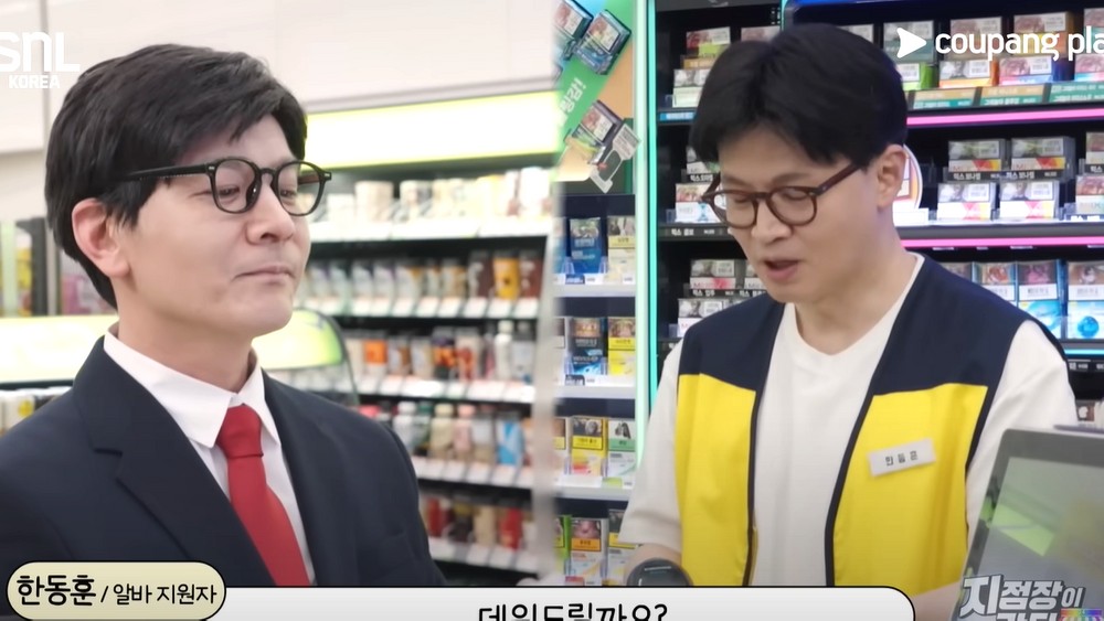 [TV리포트=진주영기자]국민의힘대선경선에나선한동훈후보가쿠팡플레이'SNL코리아시즌7'에깜짝등장했다.지난26일공개된SNL코너'지점장이간다'에편의점아르바이트지원자로출연한한후보는뜻밖의상황에현실당황한모습을보여웃음을자아냈다.이날방송의하이라이트는한후보가자신을패러디한개그맨정성호와직접마주한장면이었다.정성호는한후보특유의말투와태도를그대로흉내내며편의점손님으로등장했다.삼각김밥을집어든정성호에게한후보가"데워드릴까요?"라고묻자정성호는"제가이걸산다는걸어떻게아셨죠?"라고되물으며말을꼬기시작했다.한후보가"갖고오셨으니까요"라고대답하자정성호는"갖고왔다고산다는건억측아닙니까?"라고반문했다.이어"제가돈을낸다고한적있습니까?","영업방해의정의를아십니까?","저도법무부장관까지했습니다"라며'말꼬리잡기'공격을이어갔다.정성호의집요한패러디에한후보는순간당황한듯멈칫하며"아내가진짜이러나?저런표정앞에서지으면되게약오르는구나"라고혼잣말을했다.한후보는이장면을자신의계정에공유하며"거울보는줄알았어요…"라는짧은소감을남겼다.정성호가패러디한장면은2023년4월한동훈당시법무부장관을풍자한온라인게시물에서유래했다.'편의점에간한동훈'이라는제목의이패러디글은편의점직원의모든질문을받아치는한장관특유의논쟁적화법을희화화한것으로화제를모은바있다.당시한후보의화법은국회에서도논란이됐다.김남국민주당의원은"똑똑한줄알았는데결국남탓,말돌리기,되묻기식화법으로오만해보인다"고지적했고김의겸의원은"조선제일검이아니라조선제일혀"라며"대담한사실왜곡과역공이뛰어나다"고평가하기도했다.진주영기자[email protected]/사진=쿠팡플레이Copyright©TV리포트.무단전재및재배포금지