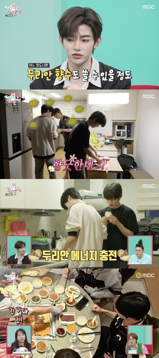 MBC‘전지적참견시점’캡처MBC‘전지적참견시점’캡처[뉴스엔서유나기자]제로베이스원장하오가남다른두리안사랑을드러냈다.4월26일방송된MBC예능'전지적참견시점'(이하'전참시')344회에서는제로베이스원의일상이공개됐다.이날장하오는"냄새날까봐냉장고넣지말라며"라며싱크대밑에서두리안을꺼내이목을집중시켰다.아침부터두리안을먹을정도로두리안을좋아한다는장하오가사는숙소에서는두리안초콜릿,두리안전,두리안과자,건두리안등도찾을수있었다.세계최초두리안앰버서더를자처하는장하오는심지어사전녹화당시두리안을직접손질해팬들에게역조공한적도있었다.장하오는"옛날엔제가먹으면(멤버들이)나가서,베란다가서먹으라고했는데요즘두리안맛찹쌀떡을샀는데하나남겨서냉장고에넣어놨다.다음날없어진거다.(성한빈이먹고)그거맛있다고하더라"고폭로했다.이어"전(두리안)완전좋아한다.향수도쓸수있다"고애정을드러냈다.뉴스엔서유나stranger77@기사제보및보도자료[email protected]ⓒ뉴스엔.무단전재&재배포금지Copyright©뉴스엔.무단전재및재배포금지.