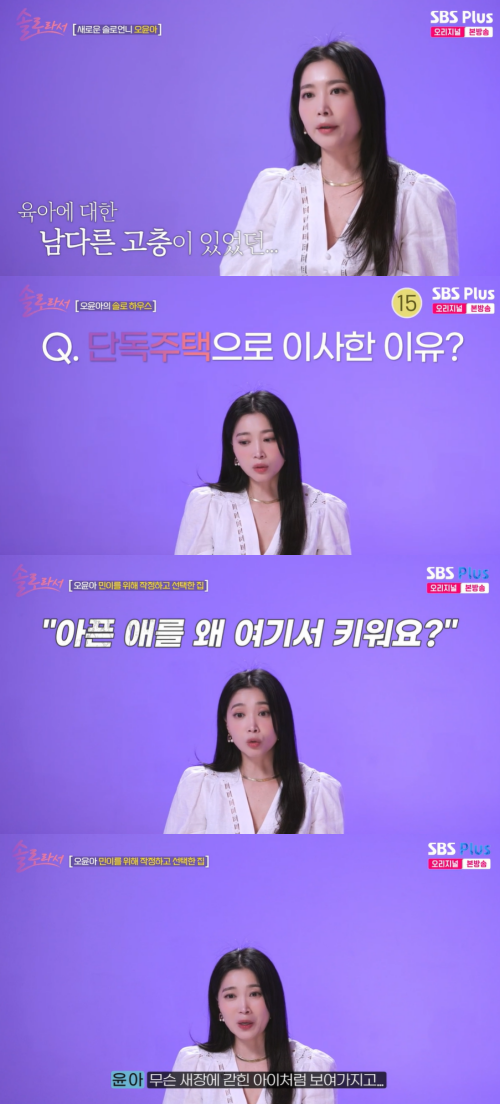 사진=‘솔로라서’방송캡처배우오윤아가단독주택으로이사한이유를밝혔다.22일방송된SBSPlus,E채널‘솔로라서’에서는오윤아와아들민이의일상이그려졌다.이날오윤아는경기도에있는단독주택에거주하게된이유를밝혔다.발달장애를앓고있는아들을키우기위해어쩔수없이단독주택을선택하게됐다고.오윤아는“서울에서아이를키울만한곳이없었다.주변사람들이너무불편해했다.아이가‘우’이런소리를내니까.아이가아파서그런다고하면‘아픈애를왜여기서키우냐’고하더라.그런이야기들을듣다보니까아이도자연스럽게사람들눈을피하게됐다”고털어놨다.그는이어이사를결심한결정적이유에대해“촬영끝나고왔는데아이가아파트계단에앉아서동화책을읽고있었다.그걸보고이런데에서살수없겠구나싶었다.아이가처량해보이고새장에갇힌아이처럼보였다.아이가마음껏뛰어놀고소리지를수있는곳으로가야겠다싶었다”고이야기했다.강주희기자[email protected]©일간스포츠.무단전재및재배포금지.