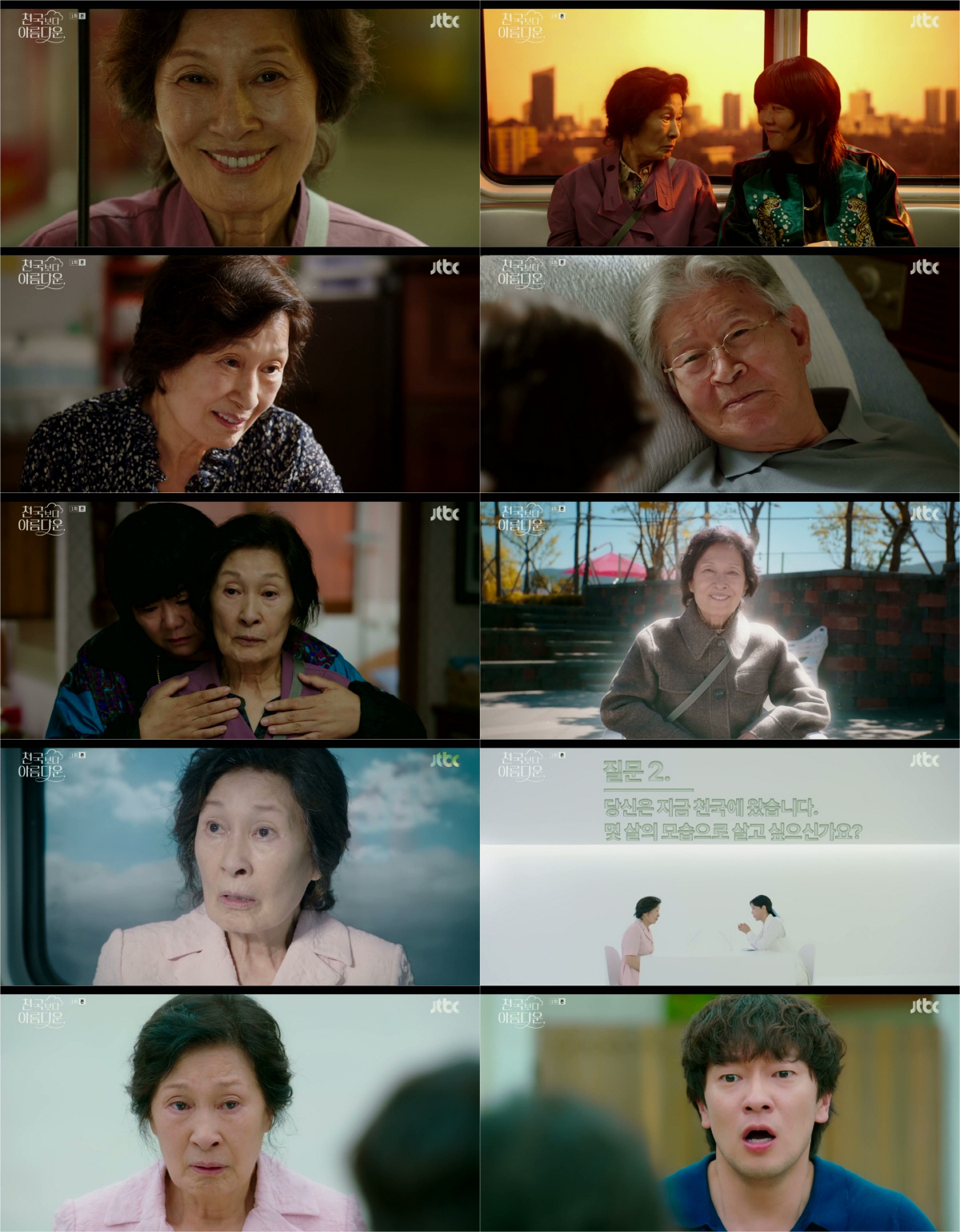 JTBC토일드라마‘천국보다아름다운’‘천국보다아름다운’이유쾌하고따뜻한이야기로시청자들을매료시켰다.JTBC토일드라마‘천국보다아름다운’(연출김석윤,극본이남규·김수진,제작스튜디오피닉스·SLL)이지난19일호평속에첫방송됐다.현실과판타지,이승과저승을오가며펼쳐지는이해숙(김혜자분)의다이내믹한천국여정기는무한한상상력을자극했다.또,80세와30세의모습으로다시만난이해숙과고낙준(손석구분)은동상이몽재회엔딩으로웃픔을유발했다.이제껏본적없는‘현생초월로맨스’의서막을올리며기대감을고조시켰다.첫회시청률은전국5.8%수도권6.8%(닐슨코리아,유료가구기준)로비지상파1위를기록하며‘아름다운’출발을알렸다.이날방송에는일수하나로시장바닥을주름잡은여든살의이해숙과그를부모이자스승처럼따르는오른팔이영애(이정은분)의사연이그려졌다.이해숙은갑작스러운사고로몸져누운남편을대신해집안의가장이되어생계를책임져야했고,그렇게시작한일수는홀아버지의무책임과무관심에방치되고있던어린소녀이영애와의가슴아픈첫만남이자오랜인연의시작이된것이었다.하루가멀다하고욕세례와물세례를맞는일수꾼의삶은역시녹록지않았다.하지만집으로돌아갈때마다이해숙은남편에게나쁜기운이묻지는않을까,오로지그걱정하나뿐이었다.고낙준(박준분)도이해숙을끔찍이아끼고사랑했다.60년세월이다보이는아내의뒷모습이예쁘고서글프다며,“당신은지금이제일예뻐요.하루같이살면하루정이쌓여서예쁜건가,지금이제일예뻐요”라는그의애정어린말들은이해숙의기억속에오래도록새겨졌다.죽음도갈라놓지못할사랑이었다.고낙준이세상을떠나고난후,이해숙도얼마지나지않아그를뒤따라저승길에오르게된것.저승행가이드의안내로저승행열차에탑승한이해숙의죽음이후의여정은상상을초월했다.이해숙을비롯한모두가종착지를알수없는상태였고,저승행열차는지옥역과천국역에멈춰서문밖으로망자들을끌어내렸다.이해숙은천국역에하차했고검색대를지나상담실로향했다.천국에서몇살로누구와살겠냐는질문에이해숙은고낙준의얼굴을떠올렸다.‘지금이가장예쁘다’라고말하던남편의모습을.남편을만나러가는길,이해숙은80세나이로온탓에무릎은삐걱댔지만가슴은두근거렸다.남편의말대로길을따라가지런히쌓인돌담과환하게핀능소화가반기는집이나타났고,두사람의이름이나란히새겨진문패를보며이해숙은고낙준도같은마음으로자신을기다리고있음에안도했다.하지만그문을열고나타난이는30대의젊은시절로돌아간고낙준이었다.서로가서로를예기치못한모습으로마주하게된이해숙,고낙준의‘웃픈재회’가다음회에대한궁금증을증폭시켰다.‘천국보다아름다운’은누구도경험해본적없지만,누구나상상해봤을법한죽음과사후세계를현실적으로구현했다.죽음을너무무겁지도슬프지도않게다루며누구나공감할수있는이야기로그려냈다.유쾌한상상력에독특한설정과세계관을더해‘천국보다아름다운’만의천국을완성했다.무엇보다김석윤감독,이남규·김수진작가특유의감성과위트는김혜자의열연을만나다시한번시너지를발휘했다.김혜자는시크와러블리의반전매력을드러내며역대급연기변신을선보였다.여기에짧지만강렬한엔딩장면으로본격적인출격에시동을건손석구,첫회부터존재감을발산하며웃음과눈물을동시에선사한이정은의활약도돋보였다.JTBC토일드라마‘천국보다아름다운’2회는오늘(20일)밤10시30분에방송된다.안병길기자[email protected]©스포츠경향.무단전재및재배포금지.